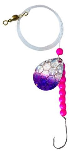 The Colorado Spinner with Purple Scale blade offers a bold, baitfish-inspired design with a dark flash that excels in deep, clear, or pressured waters. The scale pattern mimics natural forage, while the Colorado blade delivers a steady, thumping vibration that draws fish from a distance. Perfect for bass, trout, and panfish, especially when subtle yet visible presentations are key.