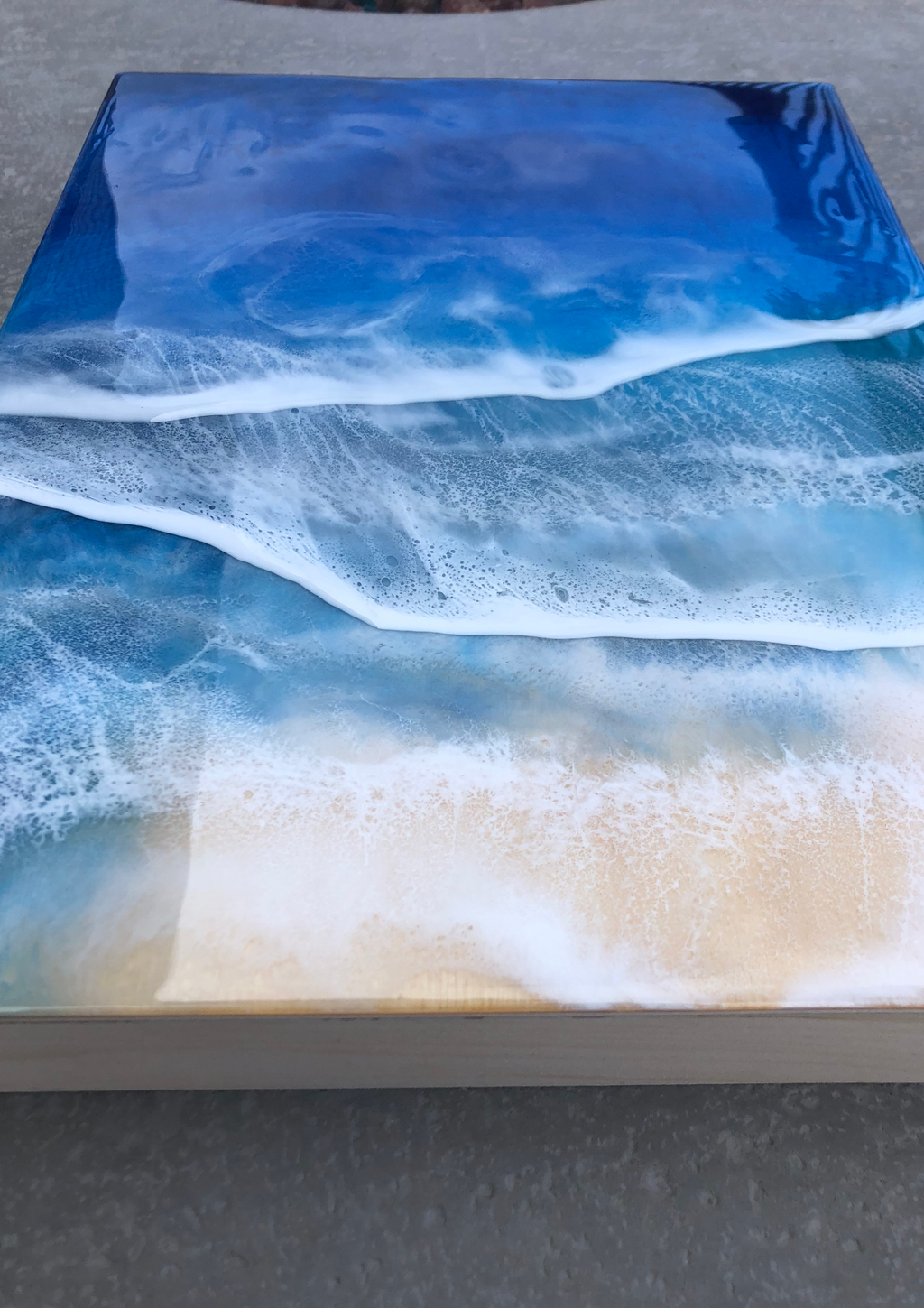 Skaha is an original painting on a cradled birch panel, set under archival-grade resin for durability and longevity. This 12"x18" handmade artwork captures natural beauty, bringing a coastal and artistic touch to any space.