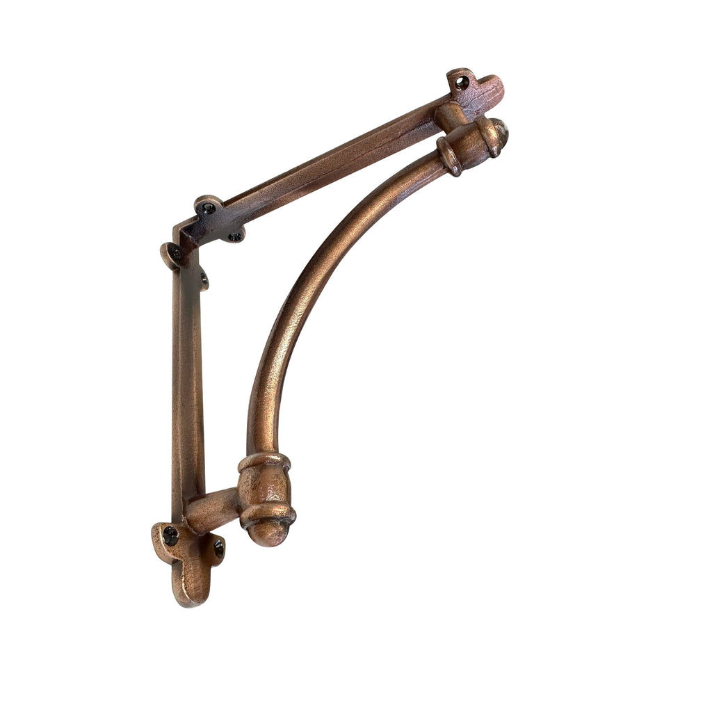 Combine style and strength with this Slim Half-Round Wall Bracket. Crafted from durable cast iron with a sleek copper finish, it offers both decorative appeal and reliable support for your shelves. Ideal for creating a sophisticated display or adding functional shelving to any room, its half-round design gives a classic yet modern touch.