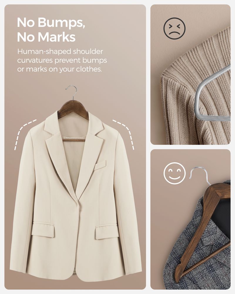 Shoulder-Friendly Shape: The contoured shoulder design mimics the natural human shape, preventing shoulder bumps and maintaining the form of your clothes.