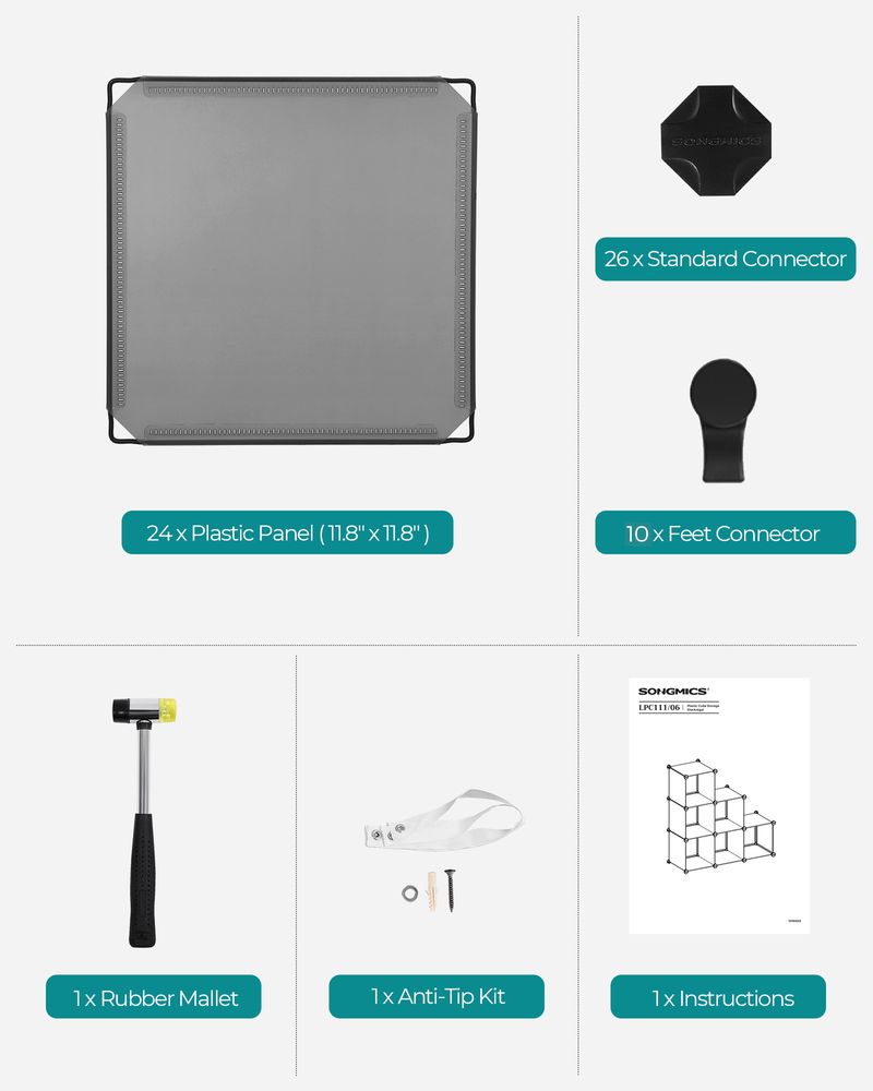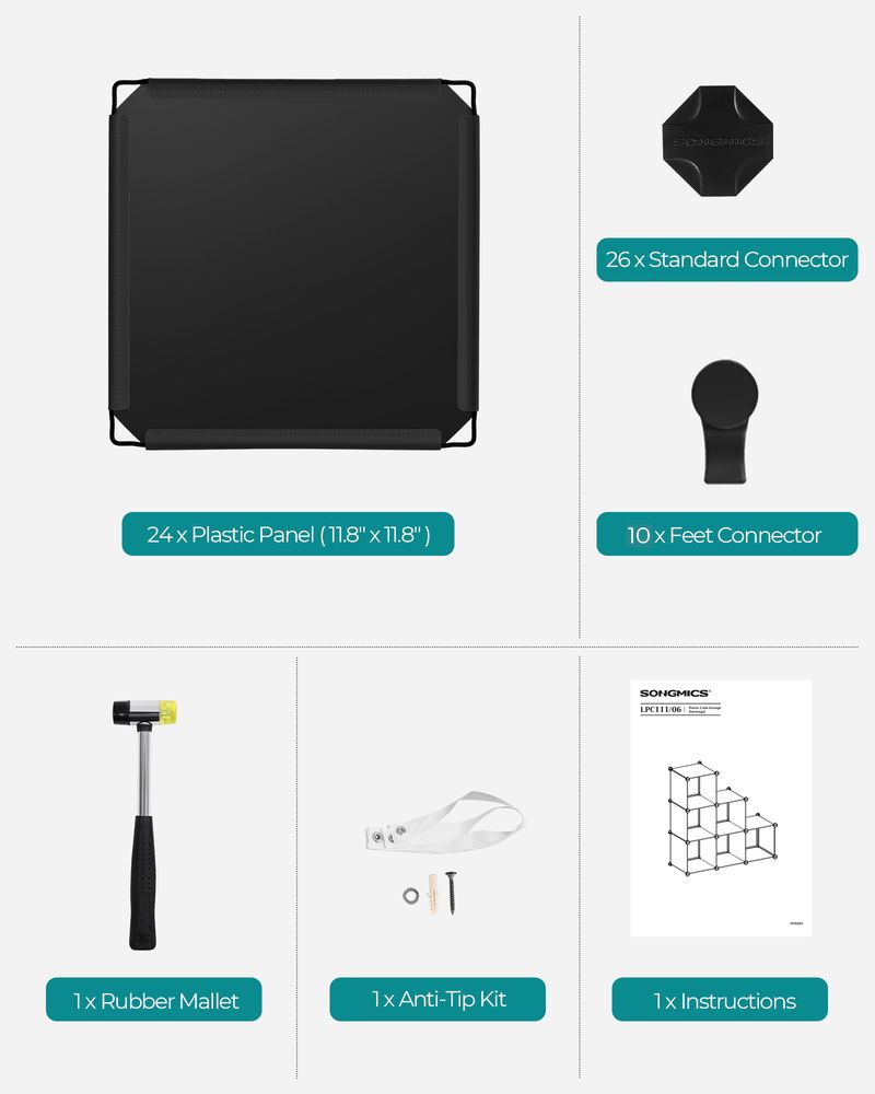 Stable & Safe Design: Constructed with a steel frame, durable PP plastic panels, and sturdy ABS connectors, ensuring stability and a load capacity of up to 22 lb (10 kg) per cube. Includes an anti-tip kit for enhanced safety.