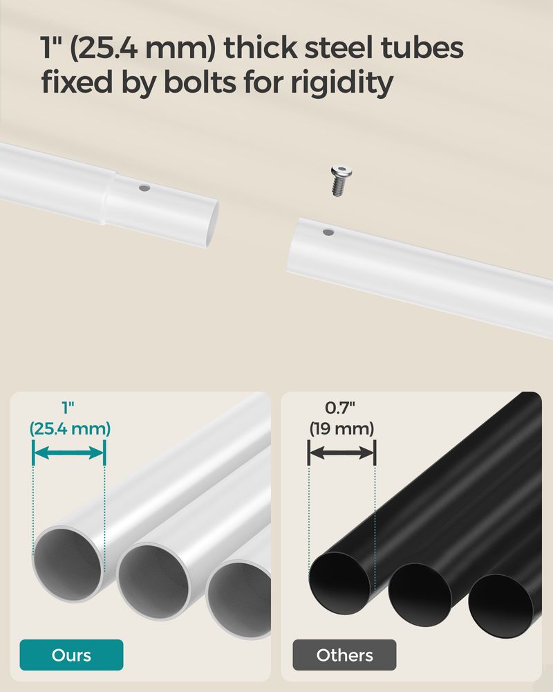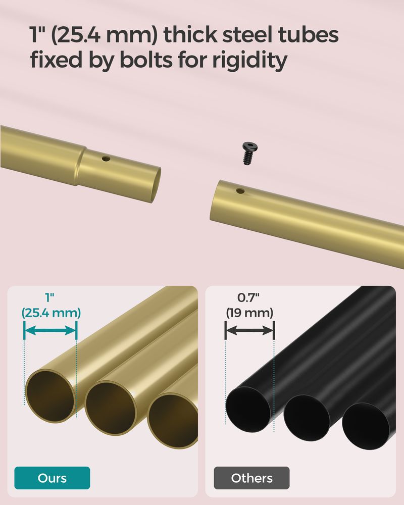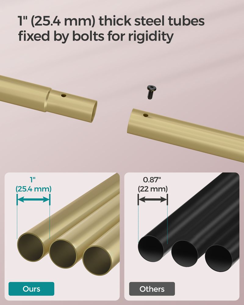 Strong & Durable Structure: Crafted from 25.4 mm diameter steel tubes and connected with reinforced screws, this clothes rack supports up to 88 lb, offering reliable stability for your heavy garments.