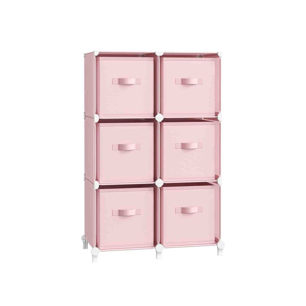 The SONGMICS Cube Storage Organizer with 6 fabric storage boxes offers a stylish and versatile storage solution for any room. Durable, foldable, and customizable, this set helps you neatly store clothes, toys, accessories, and other essentials. Smooth-edged connectors and an included anti-tip kit ensure safety, while foldable boxes save space when not in use. Perfect for keeping your home organized with modern style.