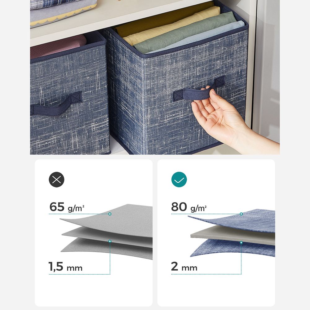 Durable and Stable: Each cube is made from sturdy 80 g/m² non-woven fabric and reinforced with thick cardboard, providing a strong structure that can hold up to 11 lb per box.