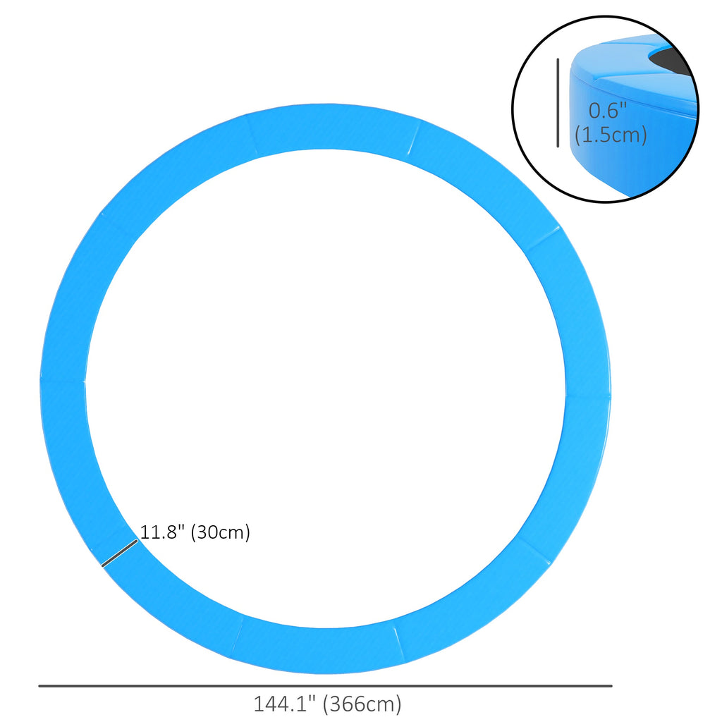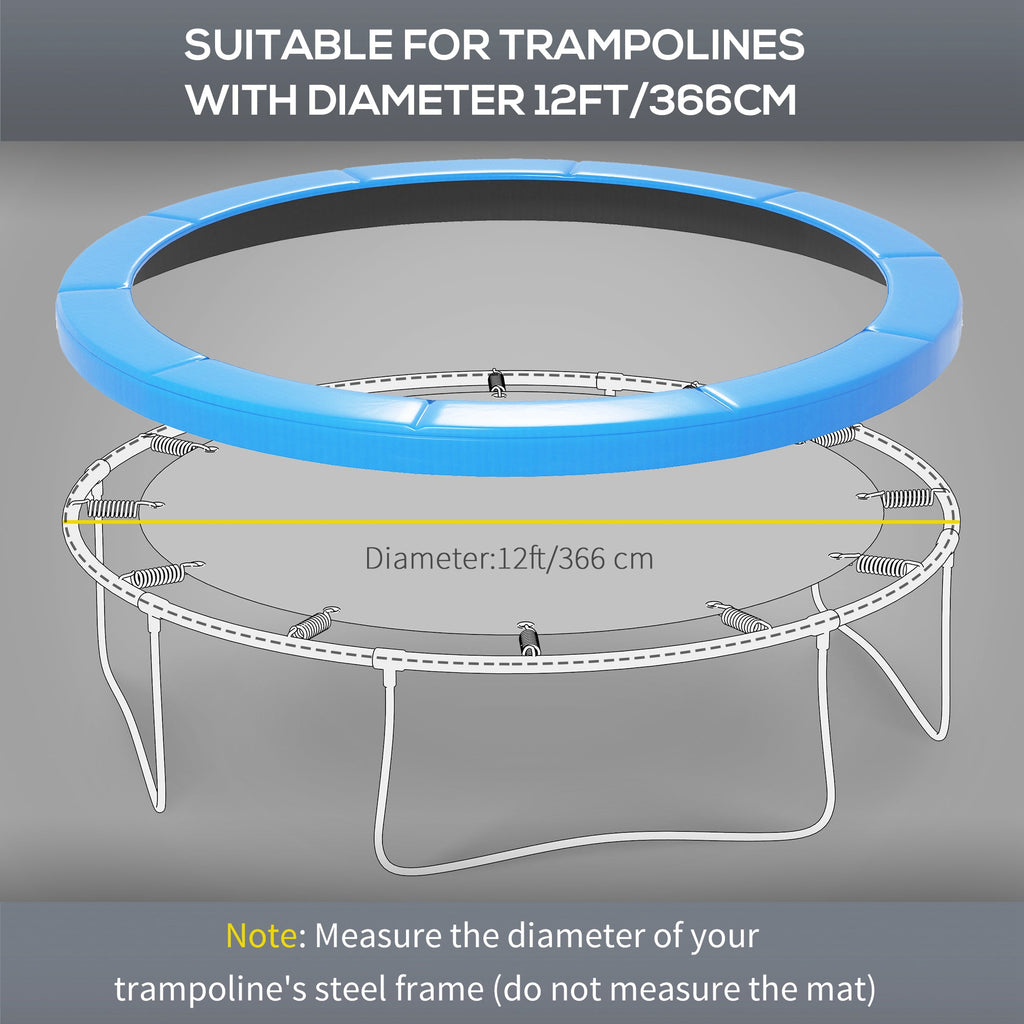 Ensure a safer and more enjoyable bouncing experience with this high-quality trampoline safety pad. Designed to fit 12FT trampolines (366 cm), this pad provides superior protection, keeping fingers, toes, and hair safe from getting caught in the springs. Made from reinforced 500D plastic and 128g/㎡ PE materials, it maintains its shape even under external pressure, offering long-lasting durability. The thick EPE foam inside adds an extra layer of safety by cushioning any impact. Easy to install, the pad simply unfolds and attaches to the trampoline frame with elastic straps, requiring no tools. Built to withstand all weather conditions, the waterproof and sun-proof materials ensure year-round protection while making the pad easy to clean with just a quick wipe.