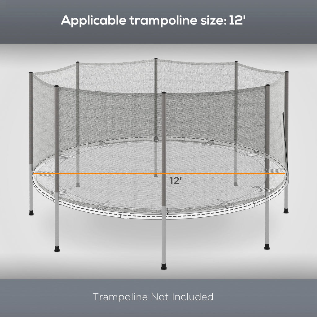 Protection Net Only: Designed for 12FT trampolines (trampoline not included), this enclosure net offers maximum safety for a worry-free jumping experience.