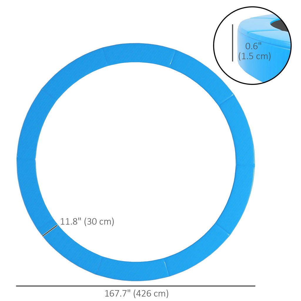 Ensure safety and enhance your trampoline experience with this high-quality 14FT trampoline safety pad. Crafted with thick EPE foam, it effectively prevents fingers, toes, or hair from getting caught in the springs, providing added protection during jumps. The pad is constructed from durable 500D plastic and 128g/㎡ PE materials, designed to maintain its shape and withstand external forces. The wide and thickened design increases protection for a safer, more enjoyable bouncing experience. With waterproof and sun-proof materials, this spring cover can endure all weather conditions, offering year-round protection for your trampoline. It's also easy to clean—simply wipe down to keep it looking fresh and new.