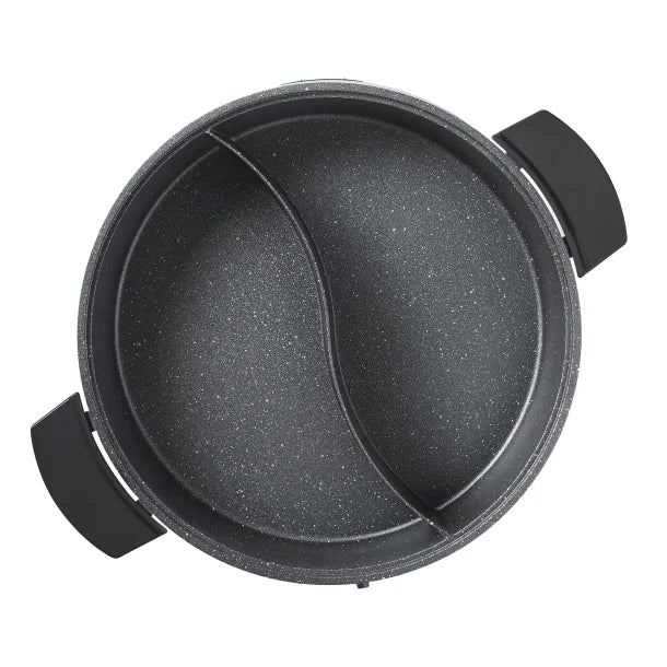 The Starfrit® 1,500-Watt 5.3-Qt. XL Dual-Sided Hot Pot in red is the ultimate cooking companion for those who enjoy versatility and efficiency in the kitchen. With a powerful 1,500-watt heating element, this hot pot quickly heats up, making it perfect for preparing a variety of dishes like hot pots, soups, stews, and fondue. The dual-sided design allows you to cook two different recipes at once, offering flexibility and convenience for busy family meals or gatherings. The 5.3-quart capacity provides ample space for large servings, while the sleek red finish adds a pop of color to your kitchen.