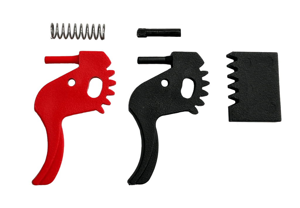 The Steambow AR-6 Stinger II Tuning Trigger is a performance upgrade designed to deliver a lighter, more consistent trigger pull for improved accuracy and easier shooting. Especially effective when paired with 90 lb PRO limbs, this tuning trigger reduces trigger weight by approximately 50%, making the AR-6 more forgiving and quicker to master. Crafted from impact- and UV-resistant polymer, the kit includes interchangeable black and red triggers so you can customize feel and appearance. The Tuning Trigger is compatible with most AR-Series lowers and provides a straightforward way to tighten your shot groupings without extensive re-training.