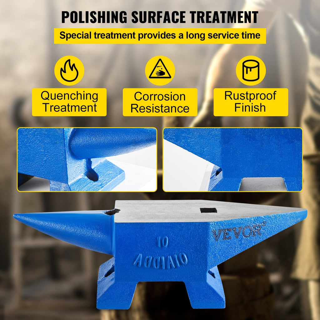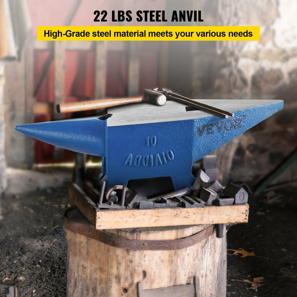 Forge with precision using the VEVOR Steel Anvil, designed for blacksmithing and metalworking enthusiasts. Weighing 22 lbs (10 kg), this anvil is crafted from high-quality forged steel, providing strength and durability for all your forging tasks. It features a round hole and a square hardy hole for versatile applications, making it the perfect tool for creating tools, shaping metal, or heavy-duty repairs. Its solid, stable design and large working surface ensure superior performance in any workspace.