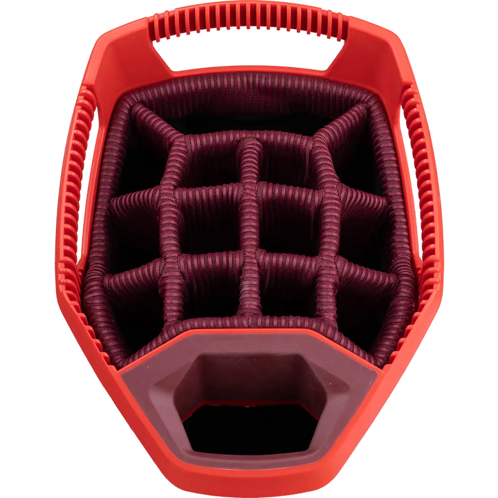The Sun Mountain C130 Golf Bag is designed for golfers who want all the premium features of the best-selling C-130 but prefer a 5-way top instead of individual club dividers. Packed with functionality, this cart bag ensures effortless access and organization during every round. All pockets are forward-facing for easy accessibility when placed on a cart. It features a ventilated cooler pocket, two full-length apparel pockets, and three velour-lined valuables pockets, including one water-resistant. The magnetic rangefinder pocket provides quick access, while the Smart Strap system securely attaches the bag to your cart with Velcro® straps to prevent twisting and strap interference. With integrated lift-assist handles at both the top and bottom, loading and unloading your bag is simple. Matching rain hood included.