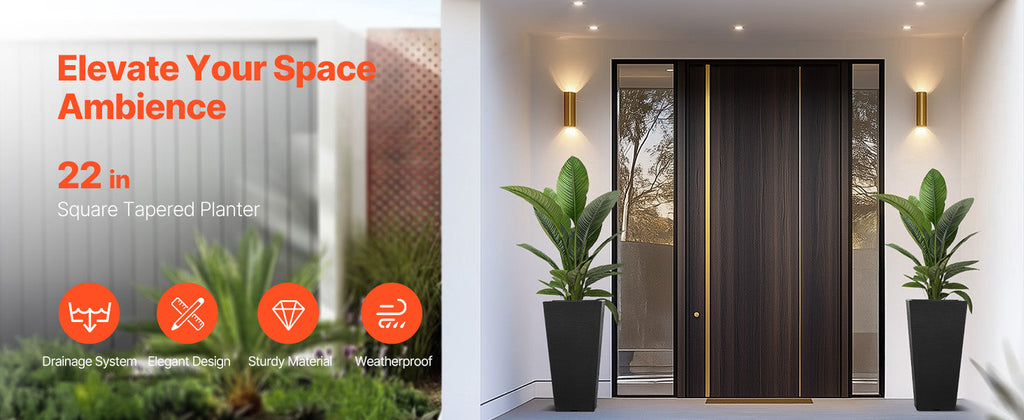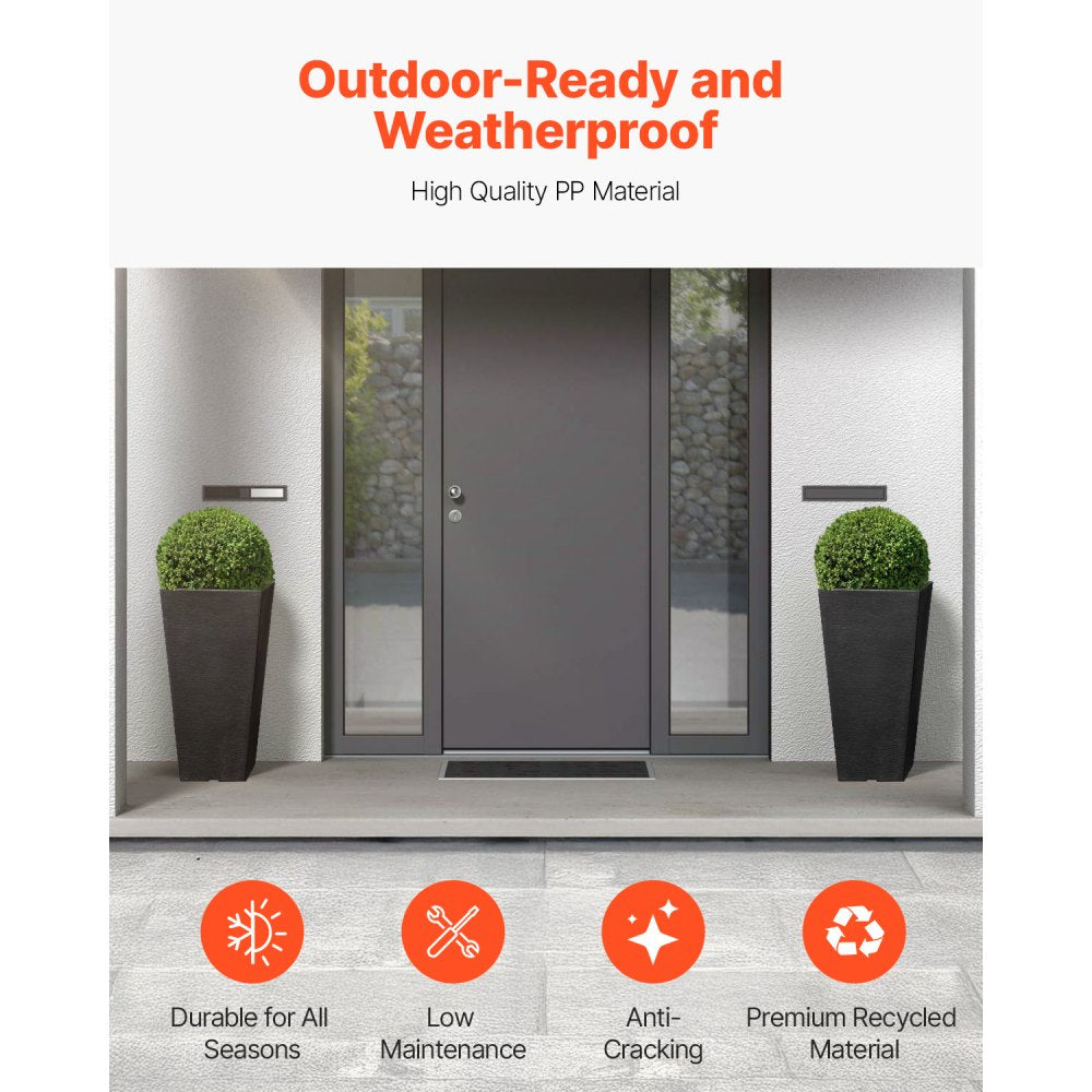 Elevate your gardening experience with the VEVOR Stylish Tall Planter, designed for versatility and durability. Whether you prefer planting directly in soil or using pots, the built-in planting box with a side pull-ring makes removal and cleaning effortless. Crafted from high-quality, weather-resistant polypropylene, this planter withstands sun, wind, and rain without fading or cracking. Its sleek black finish and elegant striped design blend seamlessly with any home or garden style, bringing both functionality and sophistication to your space.