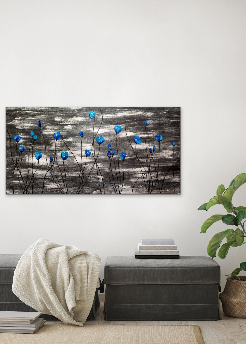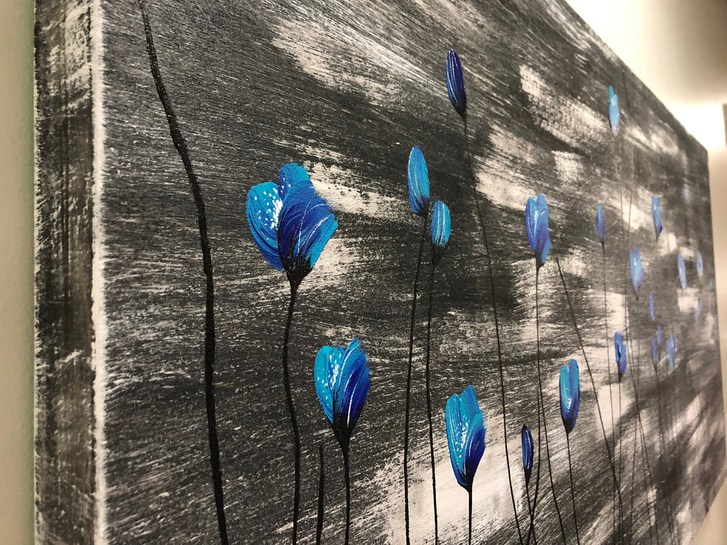 Teal Garden is a captivating floral-inspired artwork created with acrylic paint on a cradled birch panel. Rich teal tones and expressive brushwork bring depth and movement to the composition, making it a sophisticated statement piece that adds warmth, artistry, and natural beauty to modern interiors.