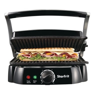 Elevate your grilling experience with THE ROCK™ by Starfrit® Panini Grill. Designed with the innovative Rock Tec™ surface, this panini grill offers unmatched durability and a superior nonstick coating, ensuring even cooking and easy cleanup. Its adjustable floating hinge accommodates sandwiches, meats, and vegetables of various thicknesses, delivering consistent results every time. The compact design and integrated drip tray make it easy to use and maintain, while the cool-touch handle ensures safe operation. Whether you’re grilling paninis, burgers, or veggies, this versatile grill is a must-have addition to your kitchen.