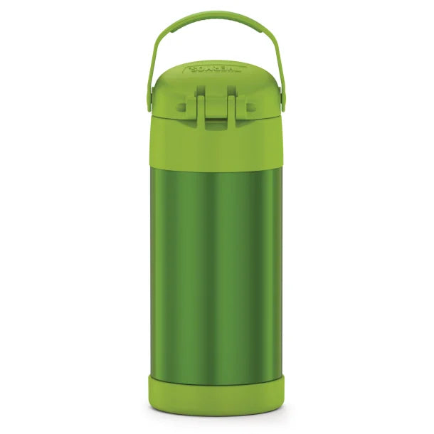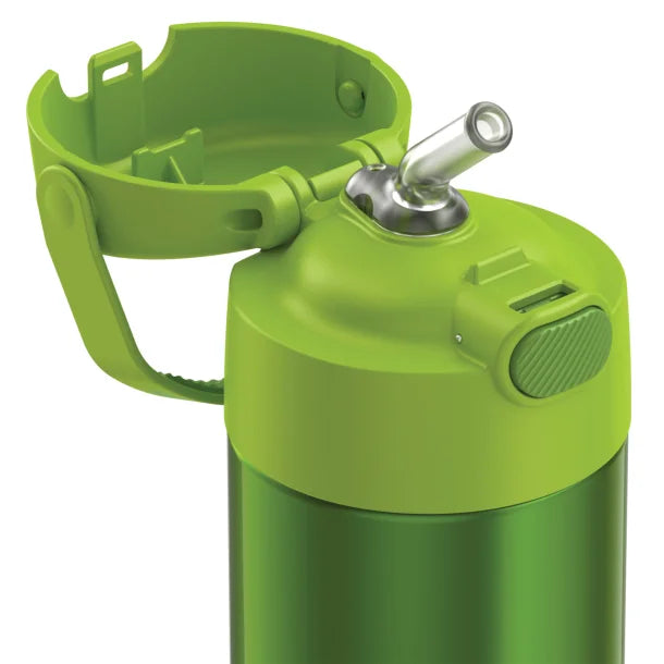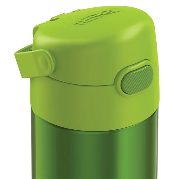 The Thermos® 12-Ounce FUNtainer® Vacuum-Insulated Stainless Steel Bottle (Lime) brings vibrant color and reliable functionality to your daily hydration routine. With advanced vacuum insulation, this bottle keeps drinks cold for up to 12 hours, making it perfect for school, sports, or outdoor adventures. The 12-ounce capacity is ideal for children and adults who need a compact yet effective way to stay refreshed. Constructed from durable, BPA-free stainless steel, it offers long-lasting use. The easy-to-use push-button lid with a pop-up straw ensures hassle-free sipping, while the spill-proof design provides peace of mind when carrying it in bags or backpacks.