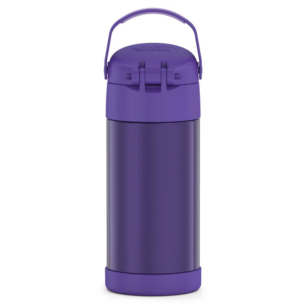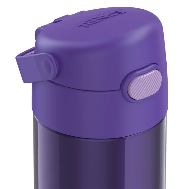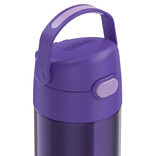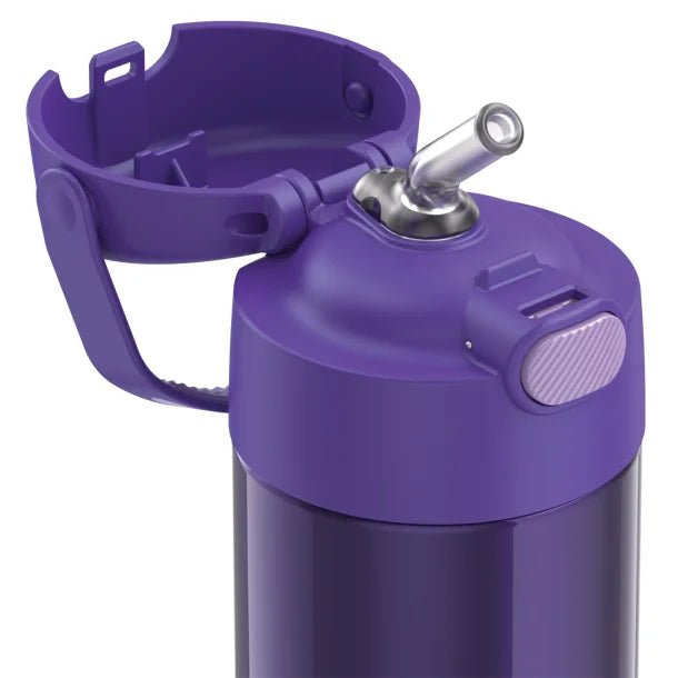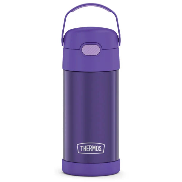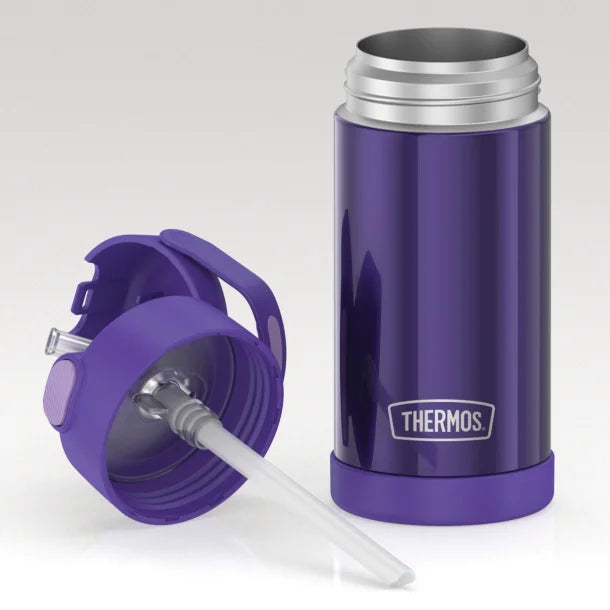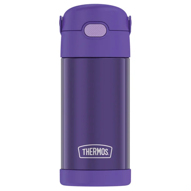 The Thermos® 12-Ounce FUNtainer® Vacuum-Insulated Stainless Steel Bottle (Purple) is a stylish and functional solution for keeping your beverages at the perfect temperature. Designed to keep drinks cold for up to 12 hours, this 12-ounce bottle is ideal for both children and adults, making it a versatile choice for school, work, or outdoor activities. Its durable, BPA-free stainless steel construction ensures it stands up to everyday use, while the vibrant purple color adds a fun and unique touch. The push-button lid with a pop-up straw allows for easy, one-handed operation, and the leak-proof design makes it safe and convenient to carry in bags or backpacks.