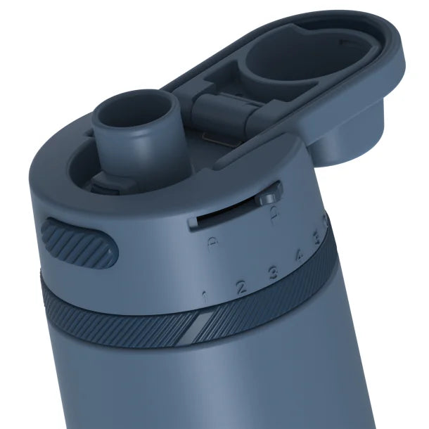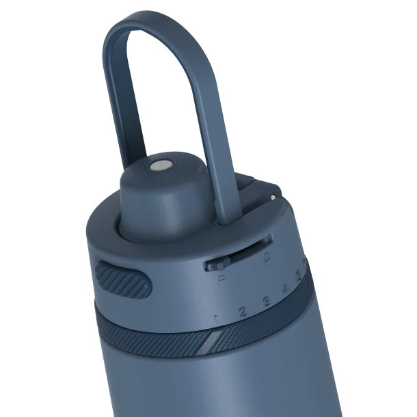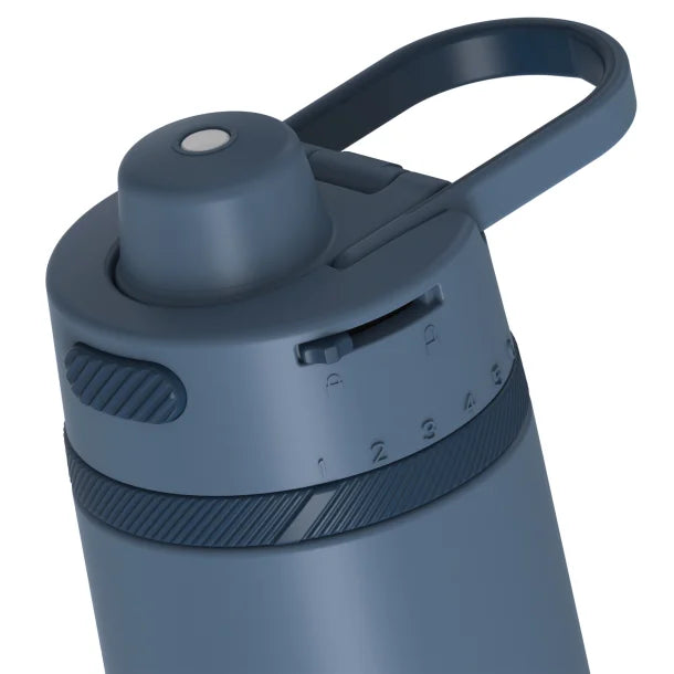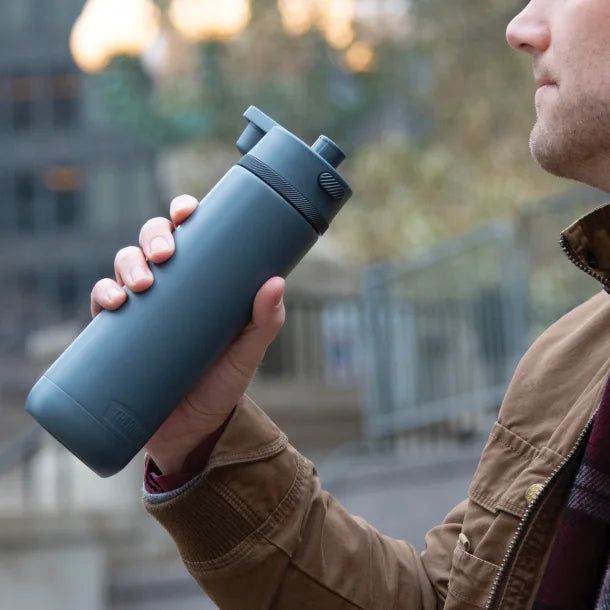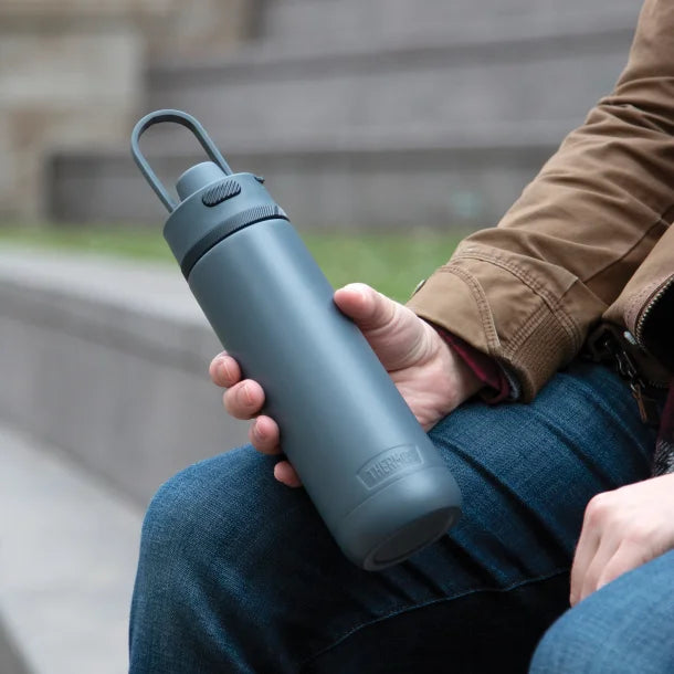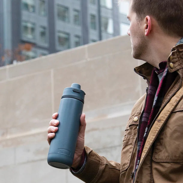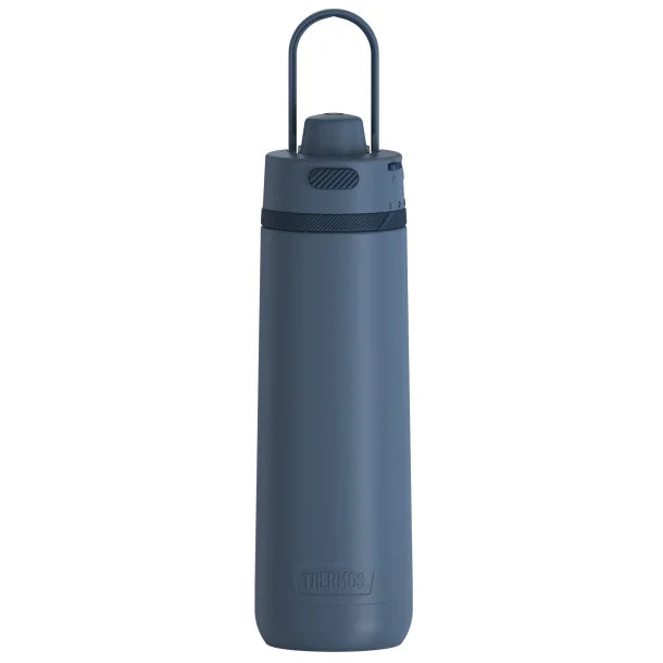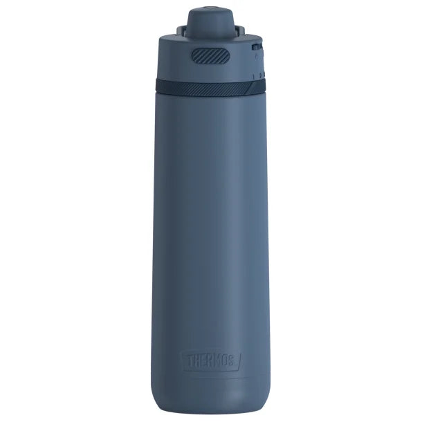 The Thermos® 24-Ounce Guardian Vacuum-Insulated Stainless Steel Hydration Bottle (Slate Blue) offers premium insulation and style to keep your beverages at the ideal temperature. The vacuum-insulated design ensures your drinks stay cold for up to 24 hours or hot for up to 12 hours. The 24-ounce capacity is perfect for carrying your favorite drink, whether you're on a hike, at the gym, or commuting to work. The durable, stainless steel construction is paired with a sleek slate blue finish, adding both sophistication and durability. The leak-proof, one-handed operated lid makes drinking on the go easy and mess-free. With an ergonomic design, this hydration bottle is easy to carry and fits comfortably in most cup holders.