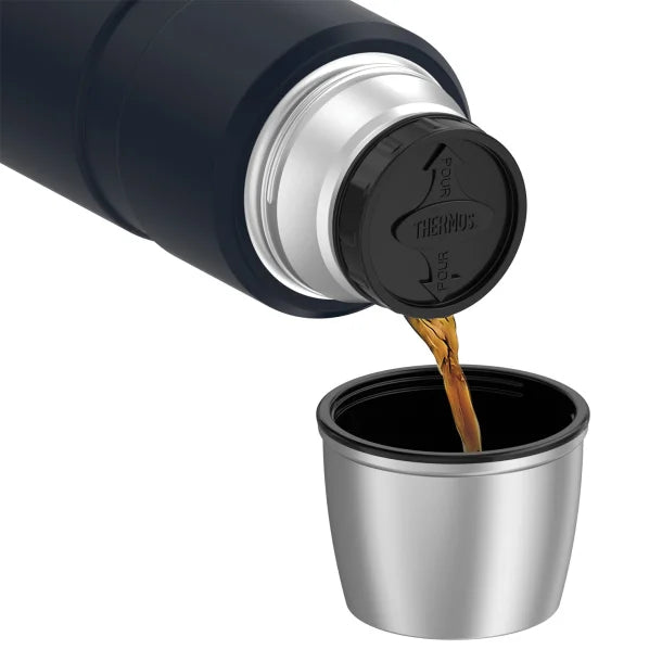 The Thermos® Stainless King™ Vacuum Insulated Stainless Steel Beverage Bottle (2 L; Blue) is the ultimate hydration solution for those who need large-capacity, temperature-retaining performance throughout the day. With a generous 2-liter capacity, this bottle ensures you stay refreshed on long journeys, outdoor adventures, or during your busy workday. Its vacuum-insulated technology keeps drinks hot for up to 18 hours or cold for up to 24 hours, providing reliable performance all day long. The robust stainless steel construction features a vibrant blue finish, resistant to scratches and dents. A twist-off lid and an ergonomic handle make this beverage bottle convenient to use and easy to carry wherever you go.