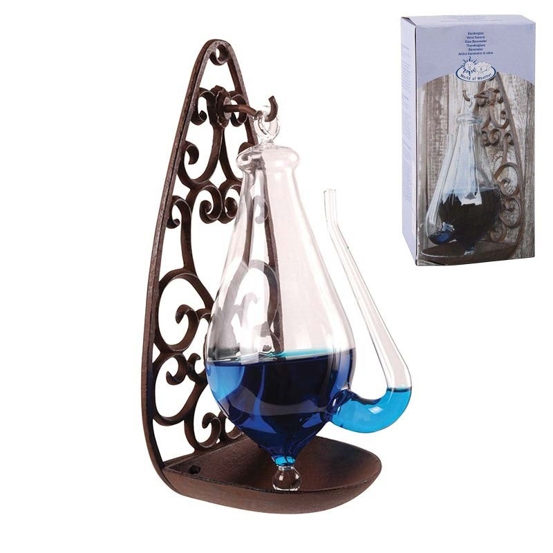 Experience a fascinating weather phenomenon with this Thunder Glass, a simple yet historic instrument used since the early 17th century. The water level in the spout reacts to changes in atmospheric pressure: during high pressure on sunny days, it is pushed down, while in low-pressure conditions on cloudy or rainy days, it rises—and can even drip ahead of an approaching storm. Crafted from cast iron and glass with blue dye powder, it comes beautifully packaged in a full-color gift box, making it both a decorative piece and an educational instrument.