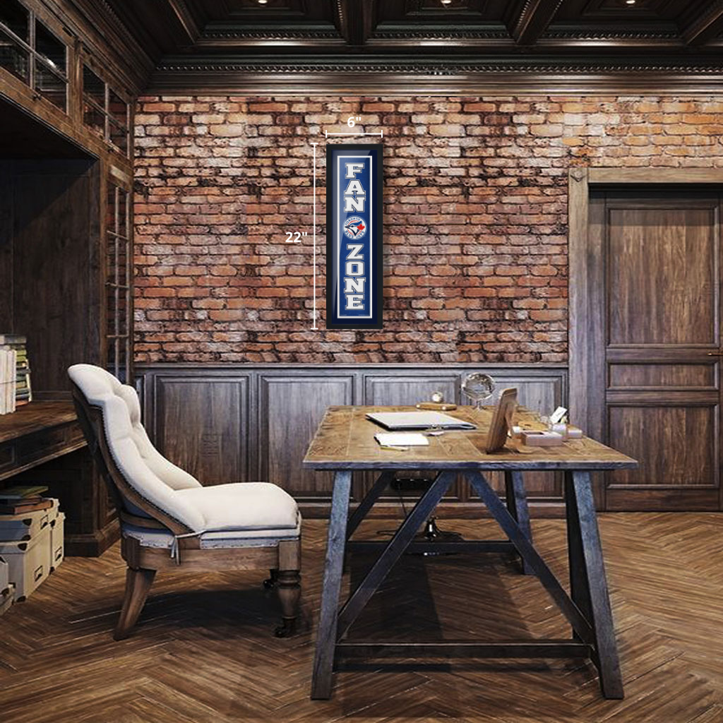 Show your Toronto Blue Jays spirit with this 6"x22" Team Fan Zone Framed Artwork! Perfect for fan caves, man caves, offices, or bars, this officially licensed MLB wall art features bold team graphics, printed and assembled in Canada. Ships with a protective acrylic cover to minimize breakage and comes ready to hang with pre-mounted hooks.