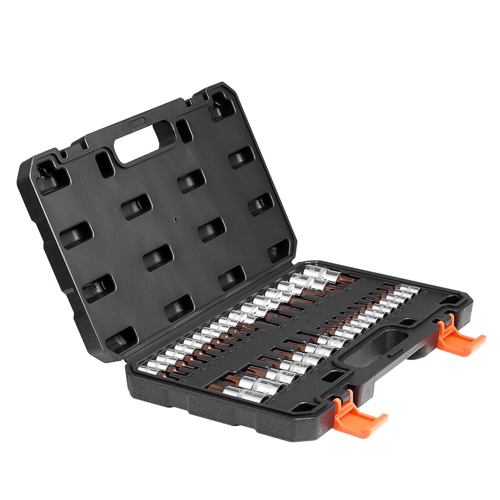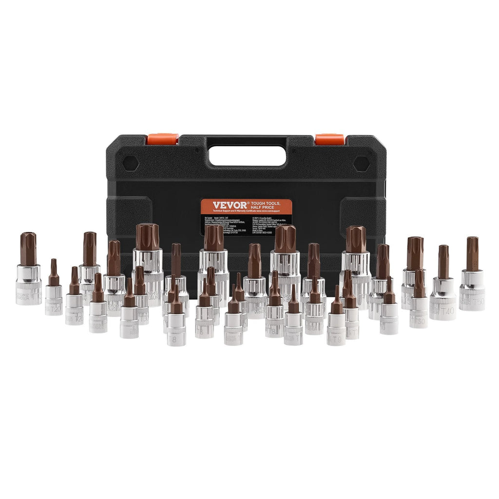 Get the job done right with the VEVOR 34-Piece Torx Bit Socket Set, engineered for both professional mechanics and DIY enthusiasts. Covering T6 to T70 sizes, including tamper-proof bits, this comprehensive set features hardened S2 alloy steel bits and CRV sockets for superior durability. Neatly organized in a rugged black PE case, it's perfect for auto repair, home maintenance, and machinery work.