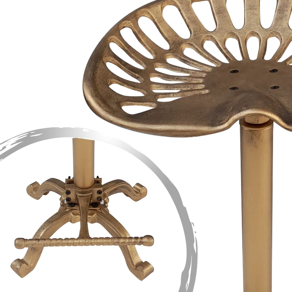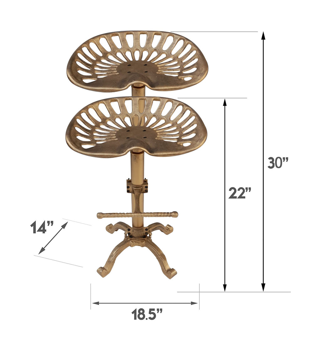 Bring vintage charm and practical functionality to your workspace or home with this Tractor Seat in Antique Gold. Its durable metal construction and classic design make it both sturdy and stylish. The seat features adjustable height from 22 to 30 inches, providing customizable comfort for various workstations or counters. Ideal for bars, workshops, or rustic-themed interiors, this tractor-style seat adds character wherever it’s placed.