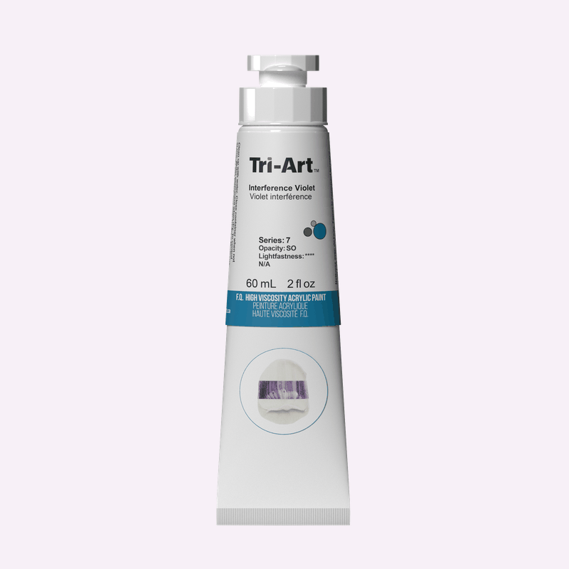 Tri-Art High Viscosity Acrylic Paint in Interference Violet is a high-performance, professional-grade colour with thick, creamy consistency, vibrant chroma, and excellent texture retention. Made with 100% finest acrylic emulsion and highest-grade pigments, it delivers authentic pigment characteristics and rich colour depth. Smooth and easy to manipulate with a brush or palette knife, it is ideal for alla prima painting or for use with mediums to adjust viscosity, extend volume, or modify luster. High pigment concentration allows for enhanced colour intensity, and all pigments are selected for permanence, purity, and outstanding lightfastness. The paint film dries flexible and resistant to climatic changes, with no fillers or extenders used.