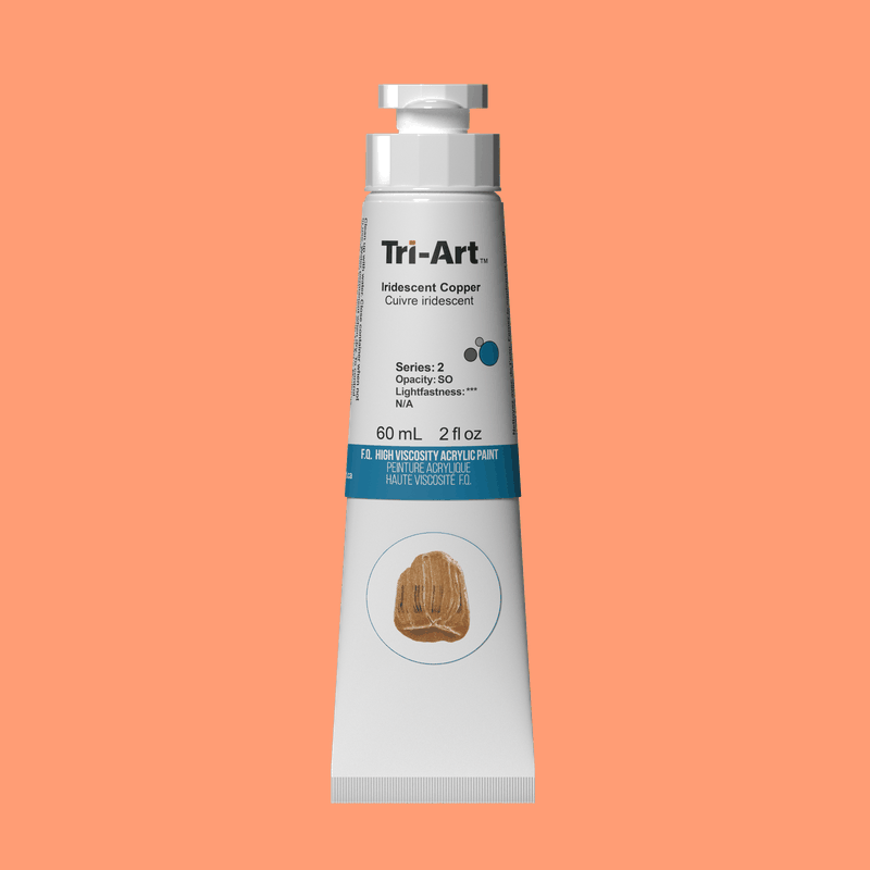 Tri-Art High Viscosity Acrylic Paint in Iridescent Copper is a high-performance, professional-grade colour with thick, creamy consistency, vibrant chroma, and excellent texture retention. Made with 100% finest acrylic emulsion and highest-grade pigments, it delivers authentic pigment characteristics and rich colour depth. Smooth and easy to manipulate with a brush or palette knife, it is ideal for alla prima painting or for use with mediums to adjust viscosity, extend volume, or modify luster. High pigment concentration allows for enhanced colour intensity, and all pigments are selected for permanence, purity, and outstanding lightfastness. The paint film dries flexible and resistant to climatic changes, with no fillers or extenders used.