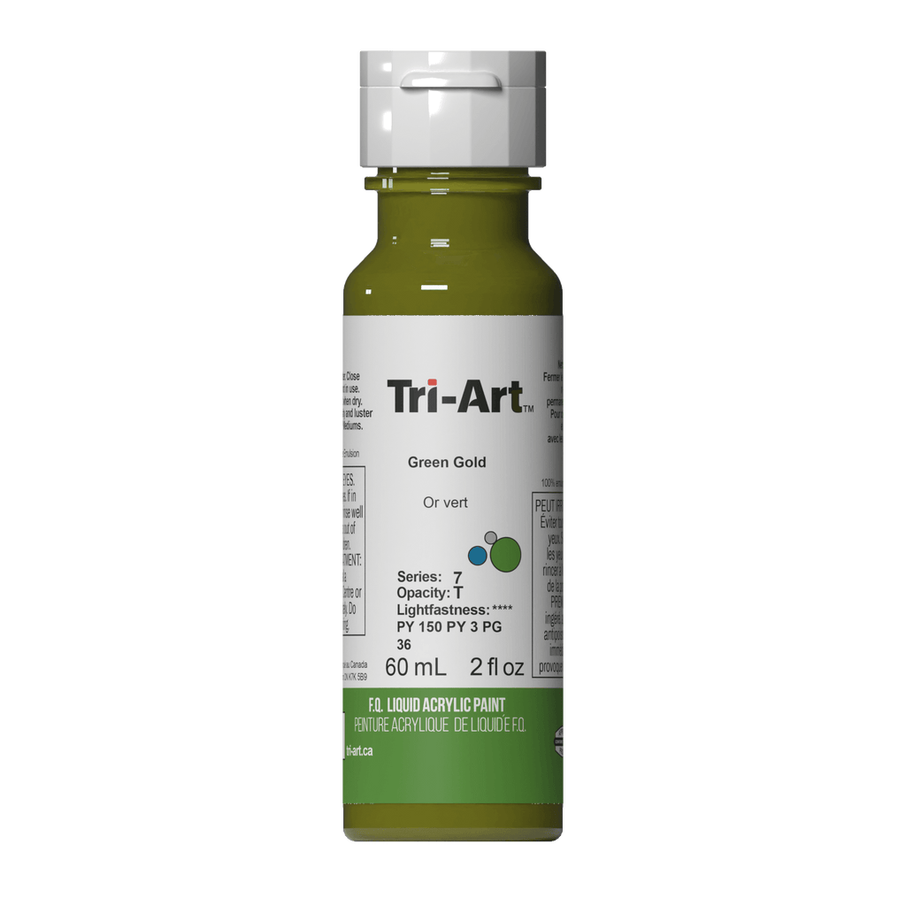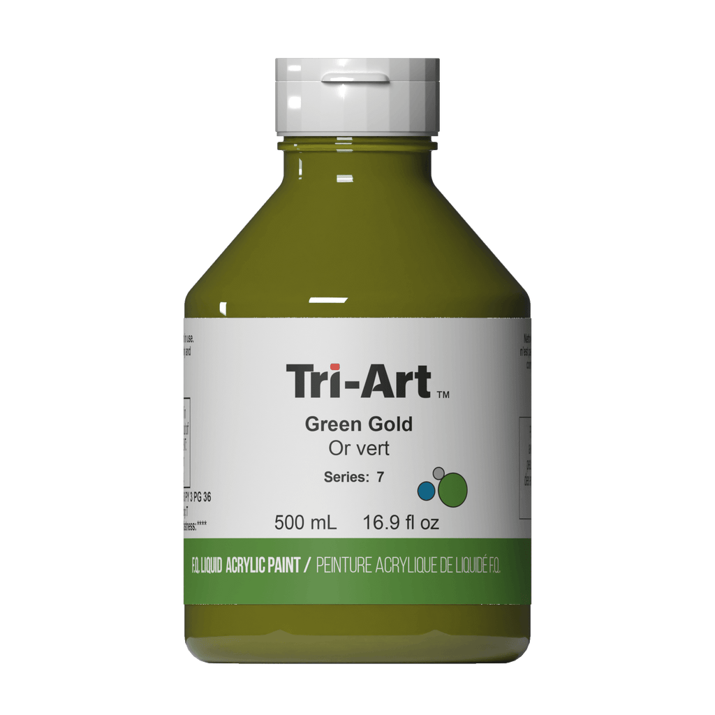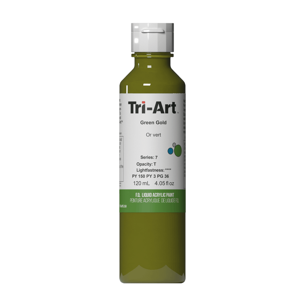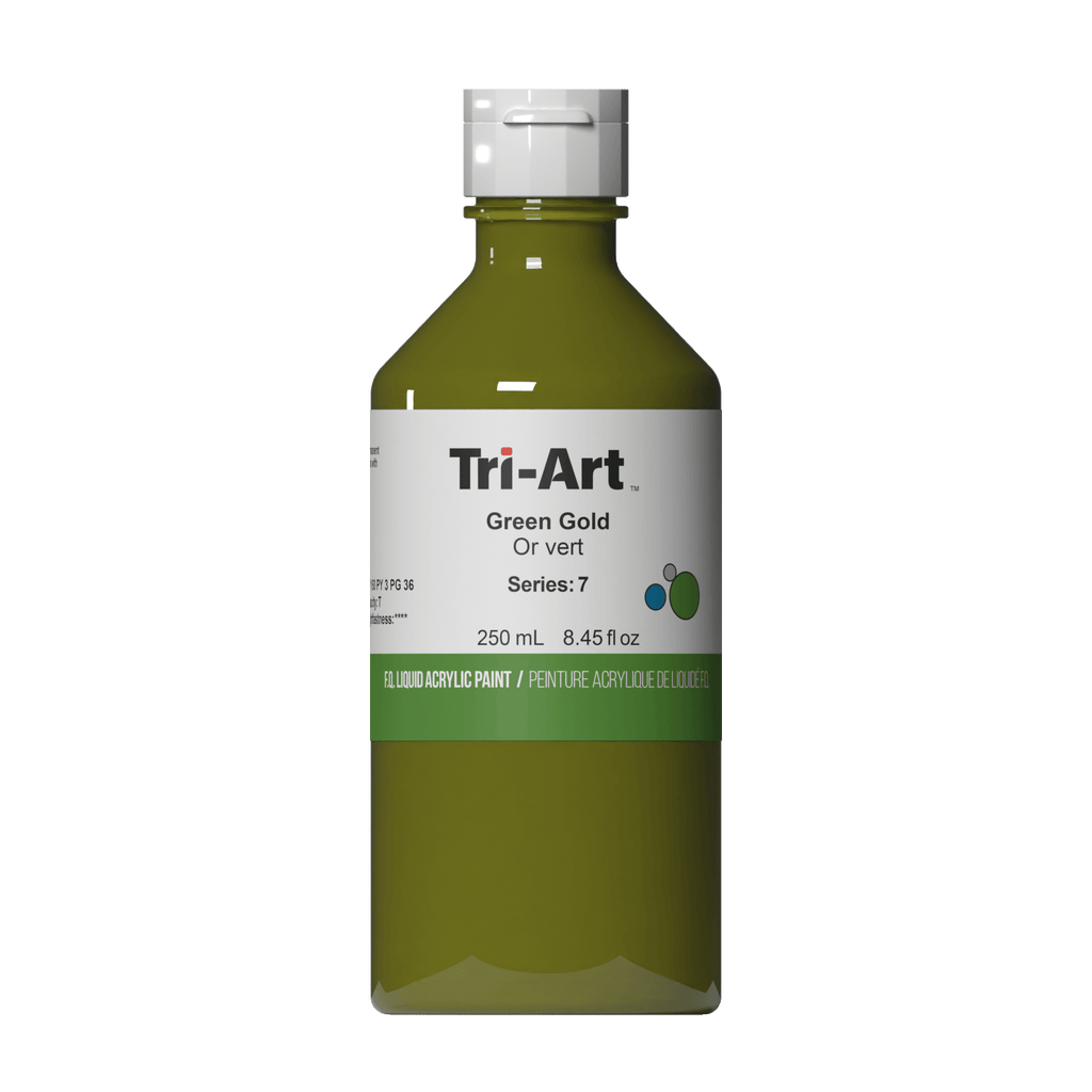 Tri-Art Liquids Green Gold is a professional fluid acrylic paint featuring a rich, luminous green-gold hue with smooth, pourable consistency. Perfect for glazing, washes, layering, pouring, and fine detail work, it blends seamlessly with other Tri-Art colours and mediums while maintaining excellent lightfastness. This versatile paint ensures vibrant, consistent results for both traditional and contemporary art techniques.