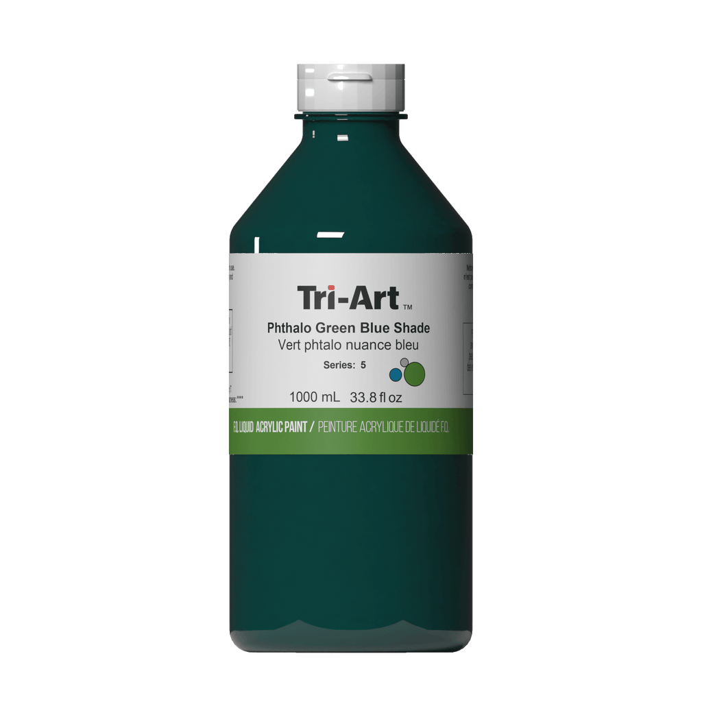 Tri-Art Liquids Phthalo Green Blue Shade is a professional-grade fluid acrylic paint known for its intense, vibrant cool green with a subtle blue undertone. Formulated with premium acrylic polymer emulsion, it delivers strong tinting power, smooth flow, and excellent permanence. Perfect for glazing, washes, pours, and mixed-media applications, this colour blends beautifully with other Tri-Art shades for rich, dynamic colour effects.