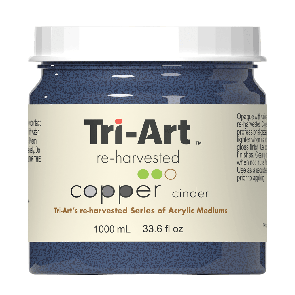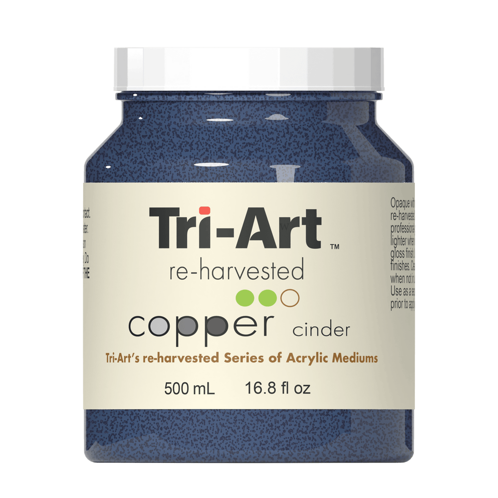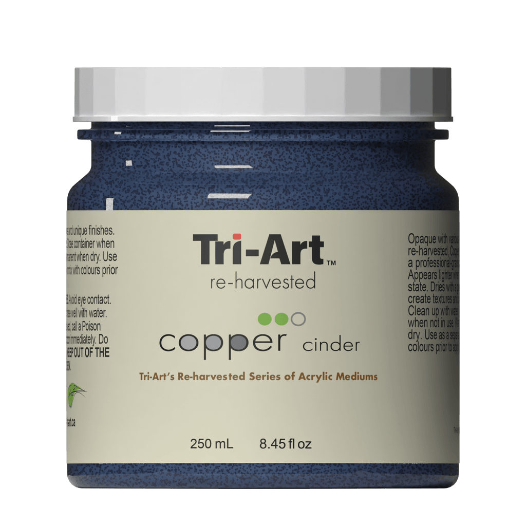 Tri-Art Re-Harvested Copper Cinder contains recycled particles from manufacturing processes, incorporated into the finest quality Gloss Gel Medium. Designed to create unique textures and striking surface effects, it offers excellent adhesion, flexibility, and clarity once dry. Appearing lighter in its wet state, it dries to a clear gloss finish. Fully compatible with Tri-Art Acrylic Colours, this medium can be mixed directly with paints or have colour applied after drying for versatile artistic applications.
