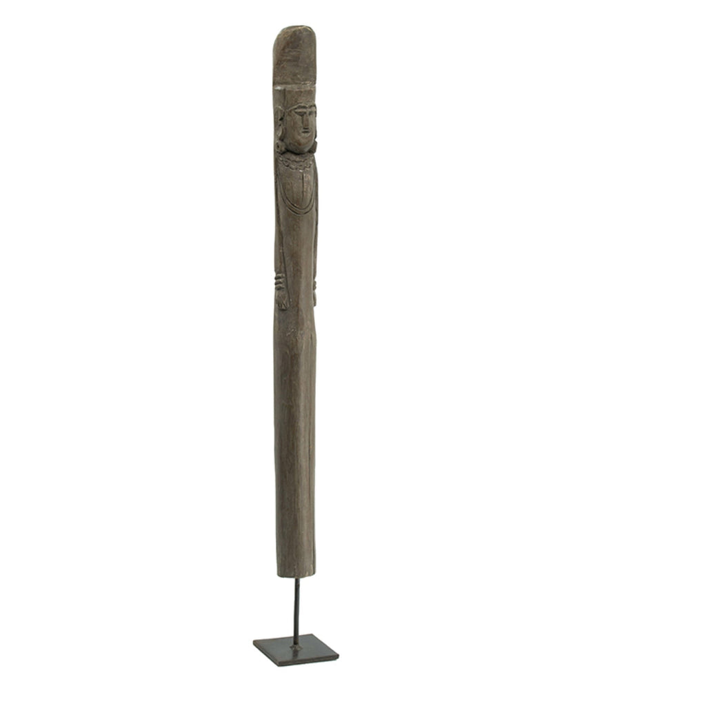 Bring authentic character and cultural artistry to your space with this Large Tribal Statue on Stand. Handcrafted with 70% original old wooden material and accented with 30% metal, this striking piece is mounted on a sturdy base for secure display. Standing at an impressive height of 45.3 inches, it makes a bold decorative statement in living rooms, entryways, or curated art spaces. A timeless blend of rustic tradition and modern presentation.