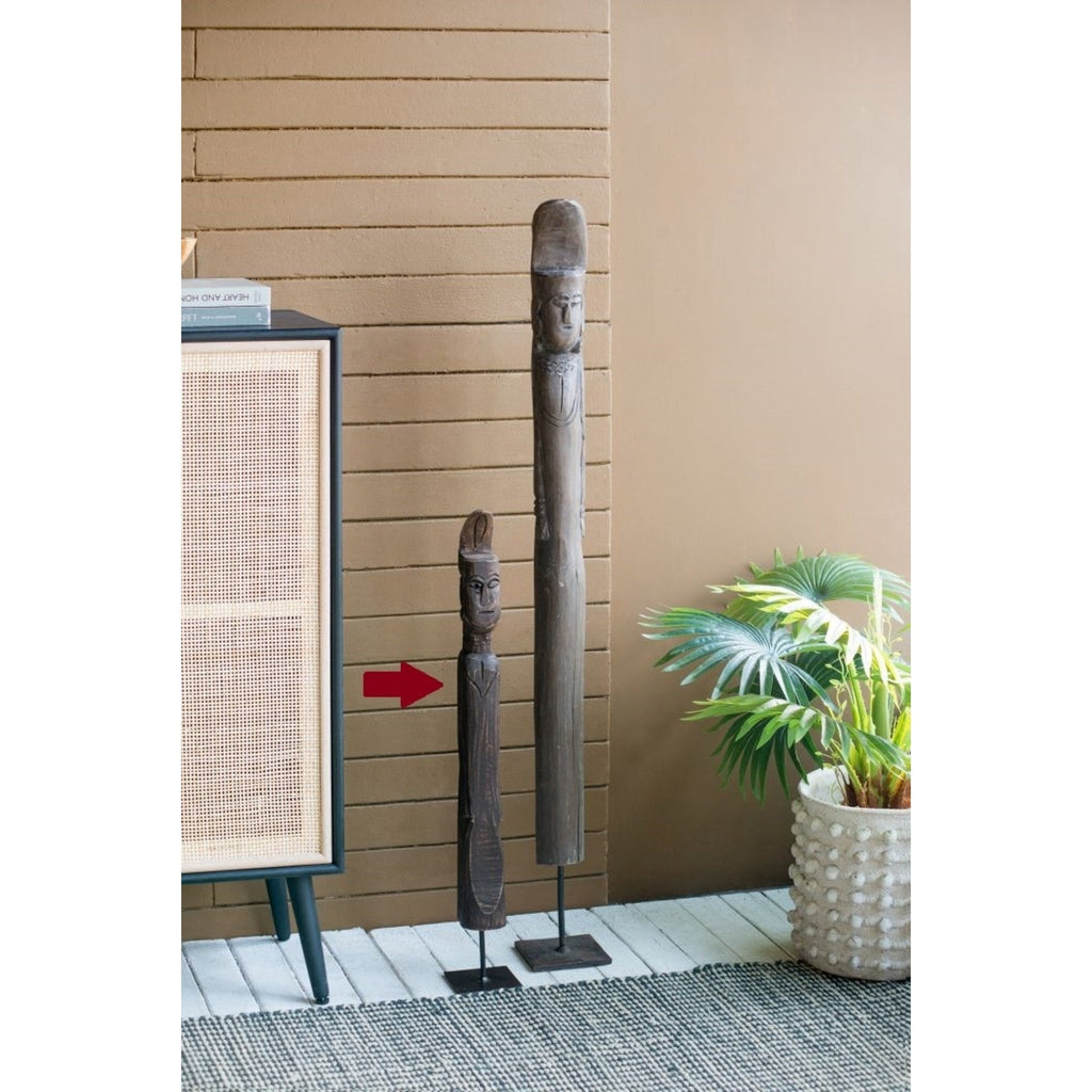 Bring a touch of cultural artistry to your space with this Tribal Statue on Stand. Crafted with 70% original old wood and 30% metal, this small statue stands 27.6 inches tall and exudes authentic tribal charm. Perfect as a decorative accent for living rooms, offices, or gallery spaces, it adds a striking focal point while reflecting traditional craftsmanship.
