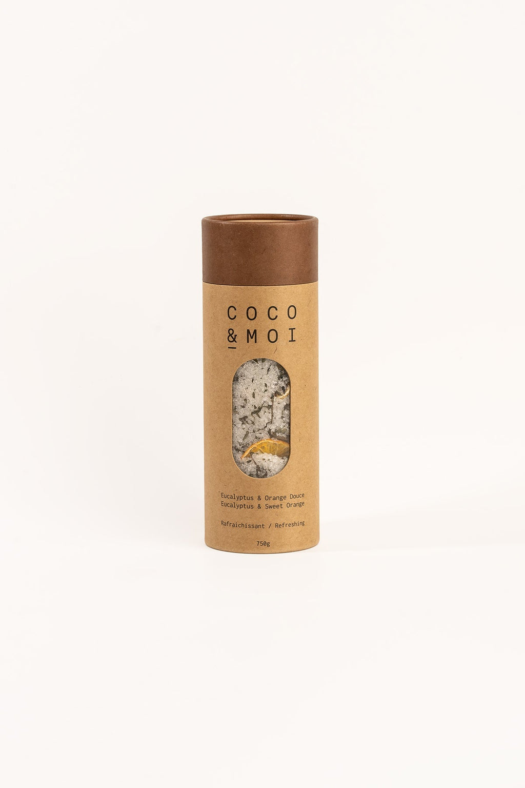 Eucalyptus & Sweet Orange: Epsom Salt, Eucalyptus & Sweet Orange oils, Peppermint leaves, Dehydrated Orange pieces