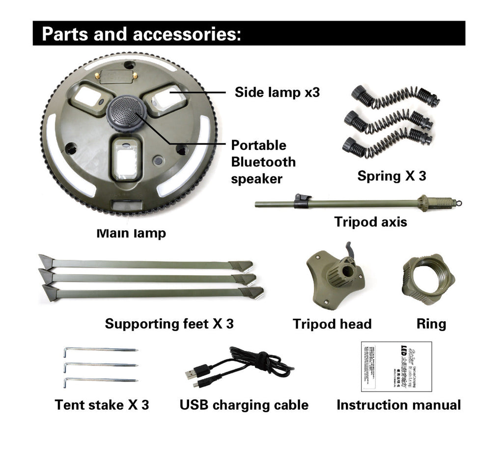 Solar & Rechargeable Power: Can be charged via solar, AC, or DC adapter. 10400mAh lithium battery doubles as a power bank for charging mobile devices.