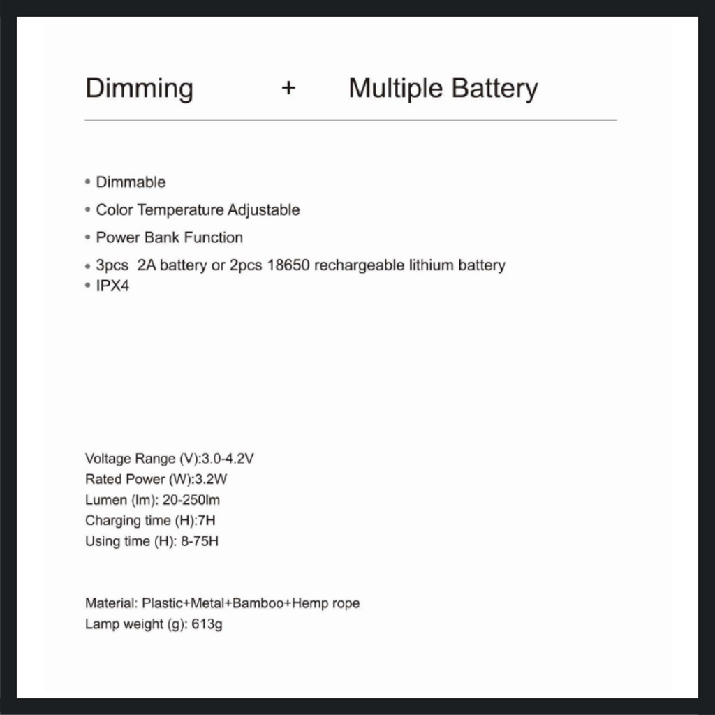 All-in-One Functionality: Lamp, decorative light, and power bank in a single portable design.