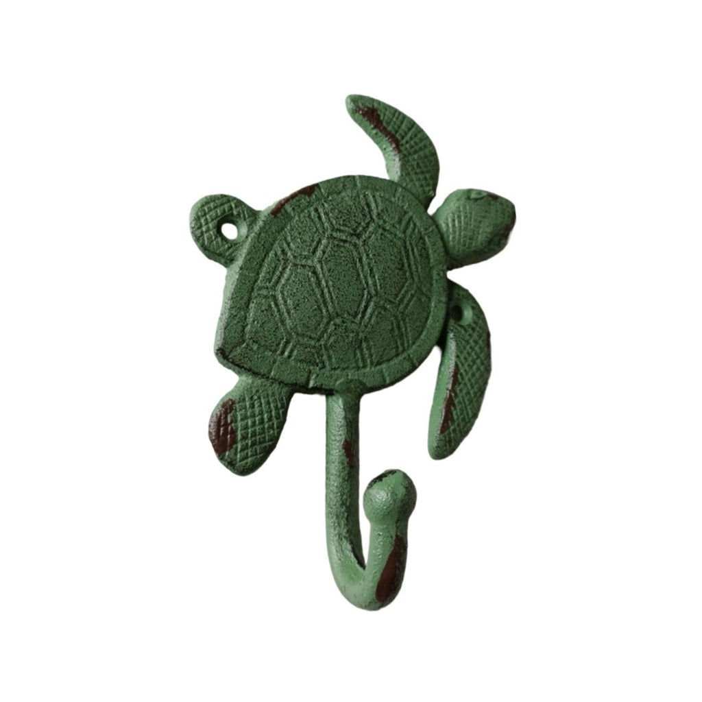 Add a charming coastal touch to your home with this Turtle Single Hook in a rustic green finish. Perfect for hanging keys, towels, hats, or small accessories, this sturdy cast iron hook combines functionality with decorative appeal. Its turtle design makes it an eye-catching piece for entryways, bathrooms, or patios.