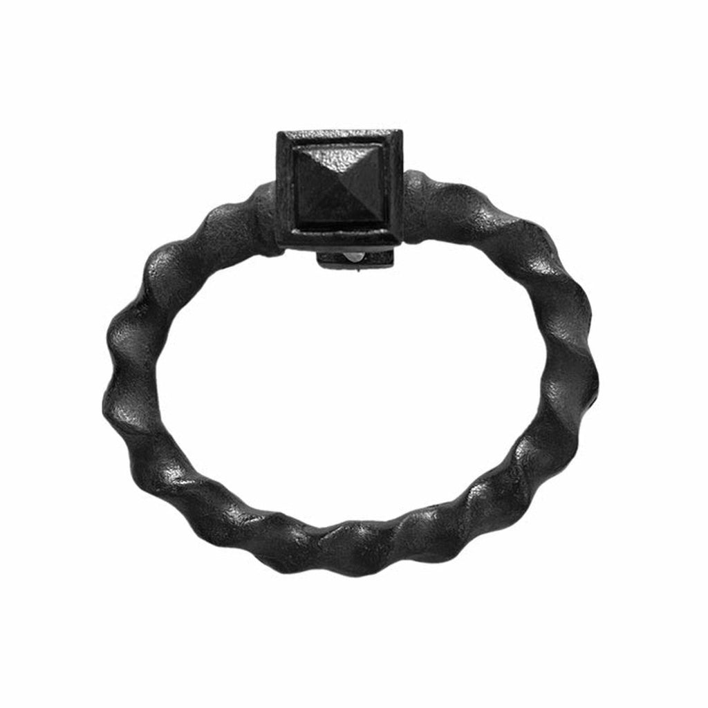 Add a touch of rustic charm to your doors or cabinets with this Twisted Ring Pull. Crafted from durable iron in India, its rustic black finish and twisted design create a vintage, industrial look. Measuring 5 inches in diameter, this ring pull is perfect for enhancing the aesthetic of furniture, doors, or drawers while remaining functional and sturdy. Last Chance – limited stock available!