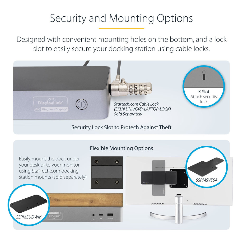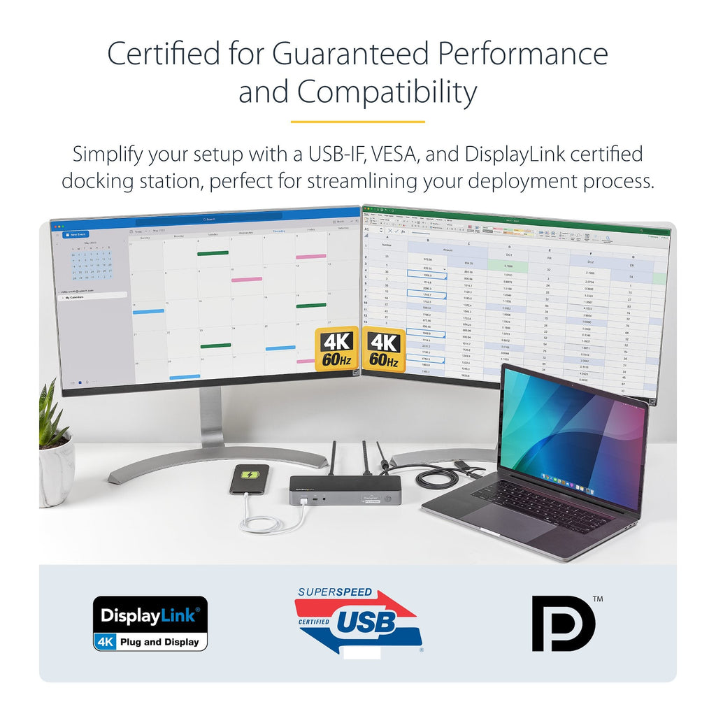 Boost productivity and connectivity with this Universal Hybrid Docking Station, supporting both USB-C and USB-A laptops. Featuring dual 4K monitor support via DisplayPort and HDMI, this dock simplifies your setup whether you're working from home, in the office, or hot-desking. With 60W USB-C Power Delivery, it charges your laptop while powering essential peripherals through the 4x USB 3.2 Gen 1 (5Gbps) ports. Also includes Gigabit Ethernet, a 3.5mm audio jack, and plug-and-play compatibility with macOS, Windows, and Chrome OS—no drivers needed for most systems.