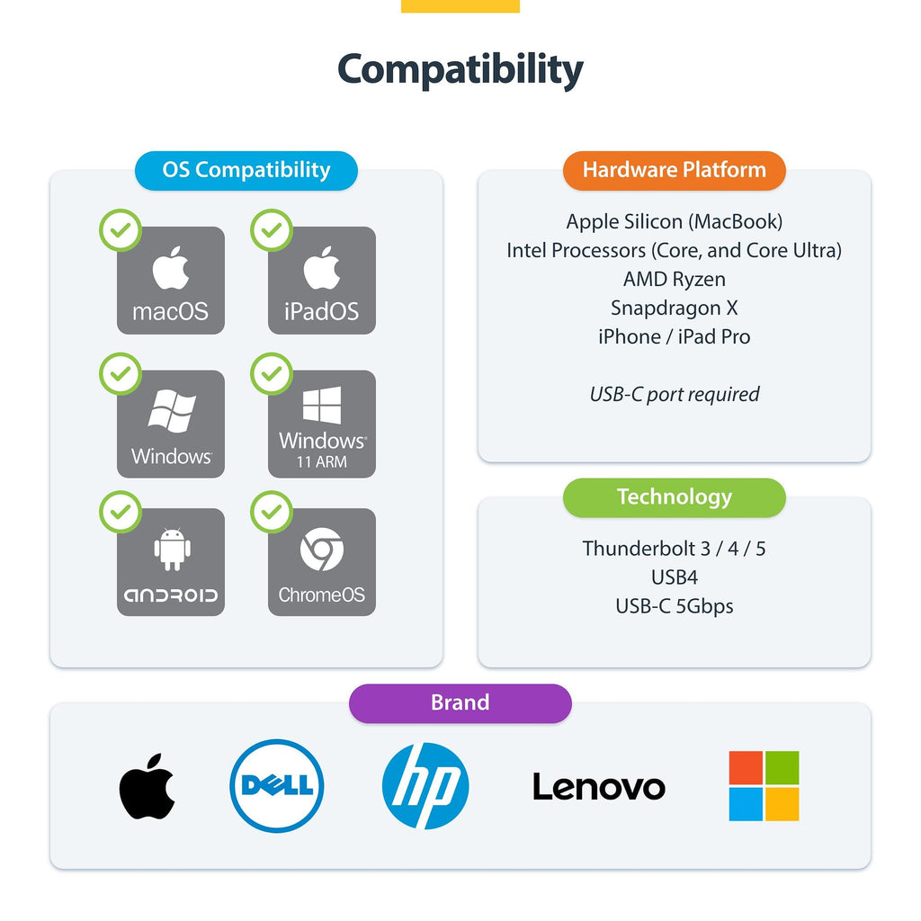 Compatibility: macOS, Windows, ChromeOS, iPadOS (USB-C supported devices)