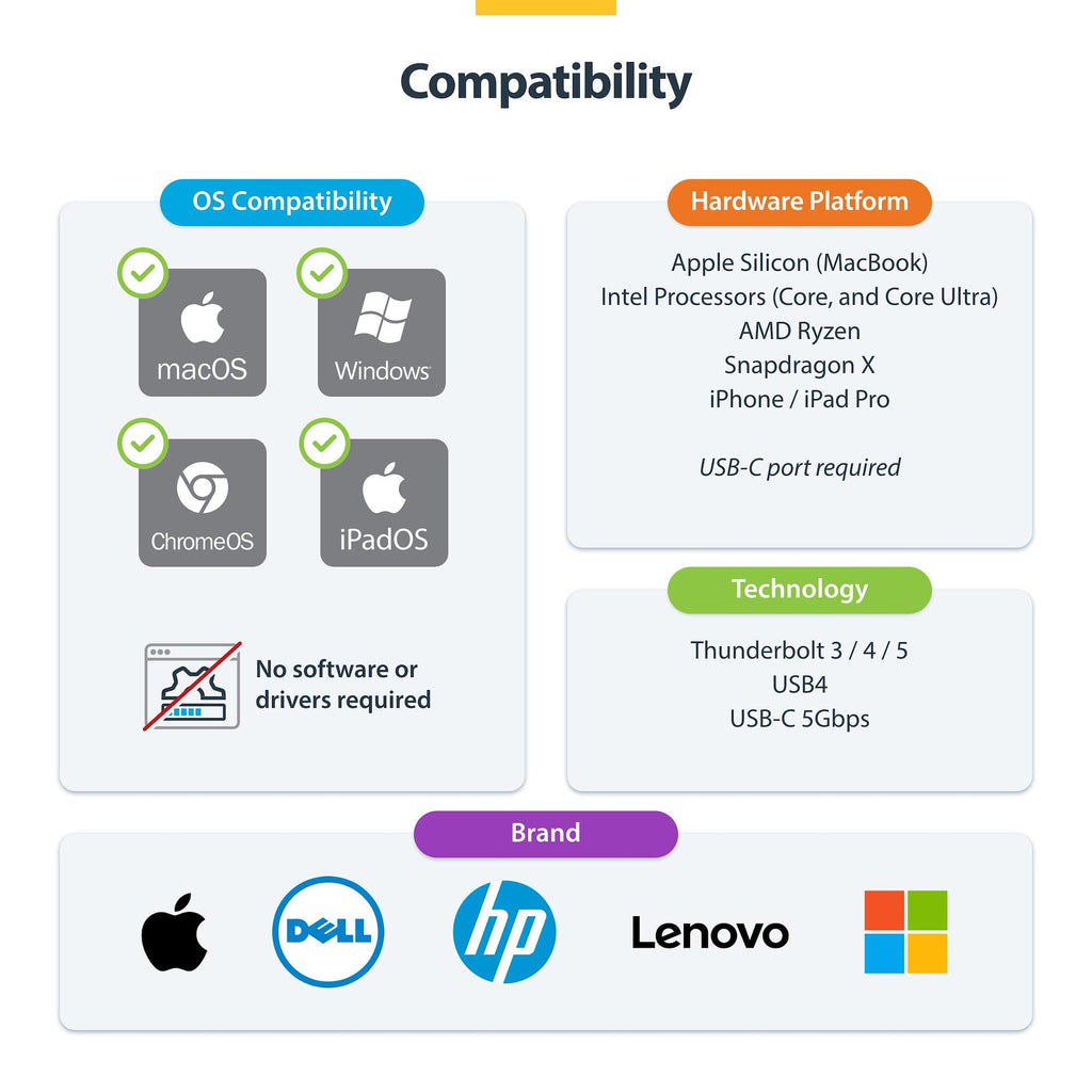 Broad Compatibility – Works with USB-C DP Alt Mode, USB4, Thunderbolt 3/4