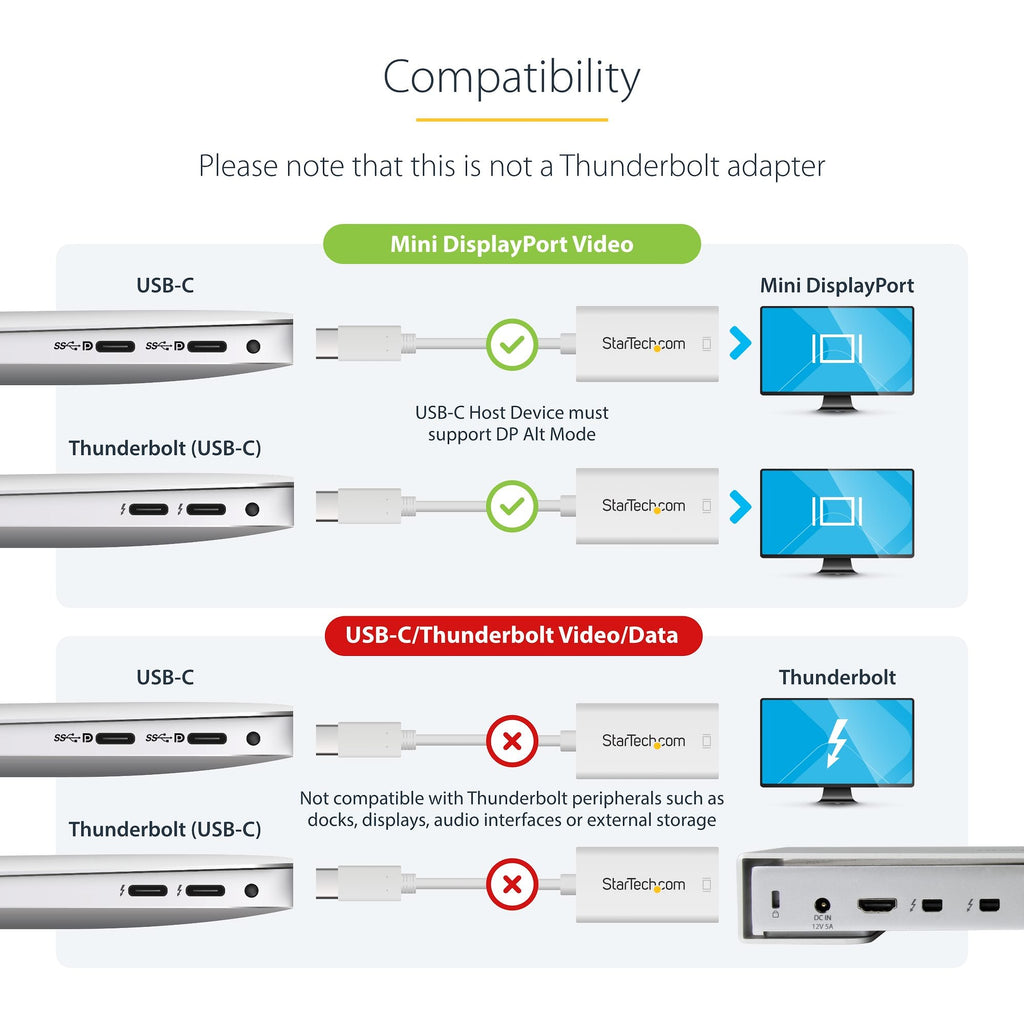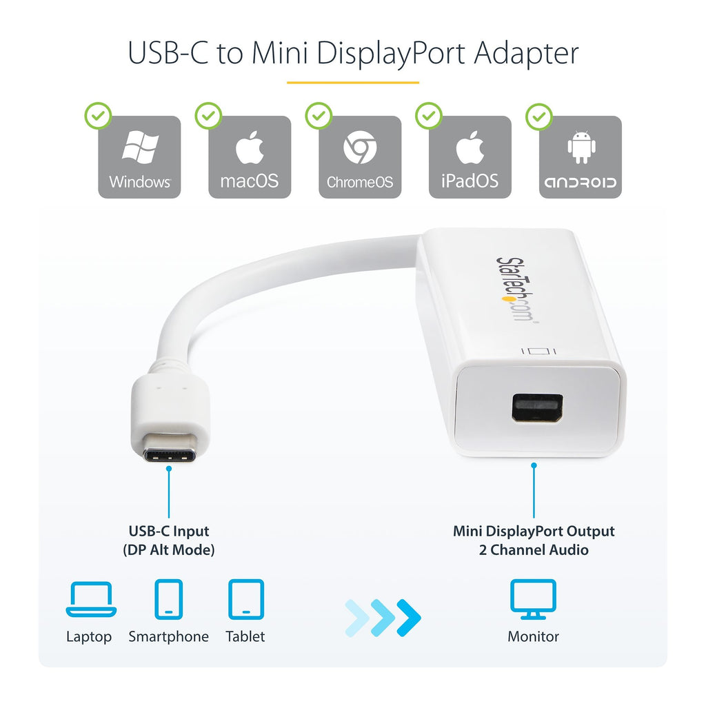USB-C to Mini DP – Connects USB-C laptops or tablets to legacy Mini DisplayPort displays