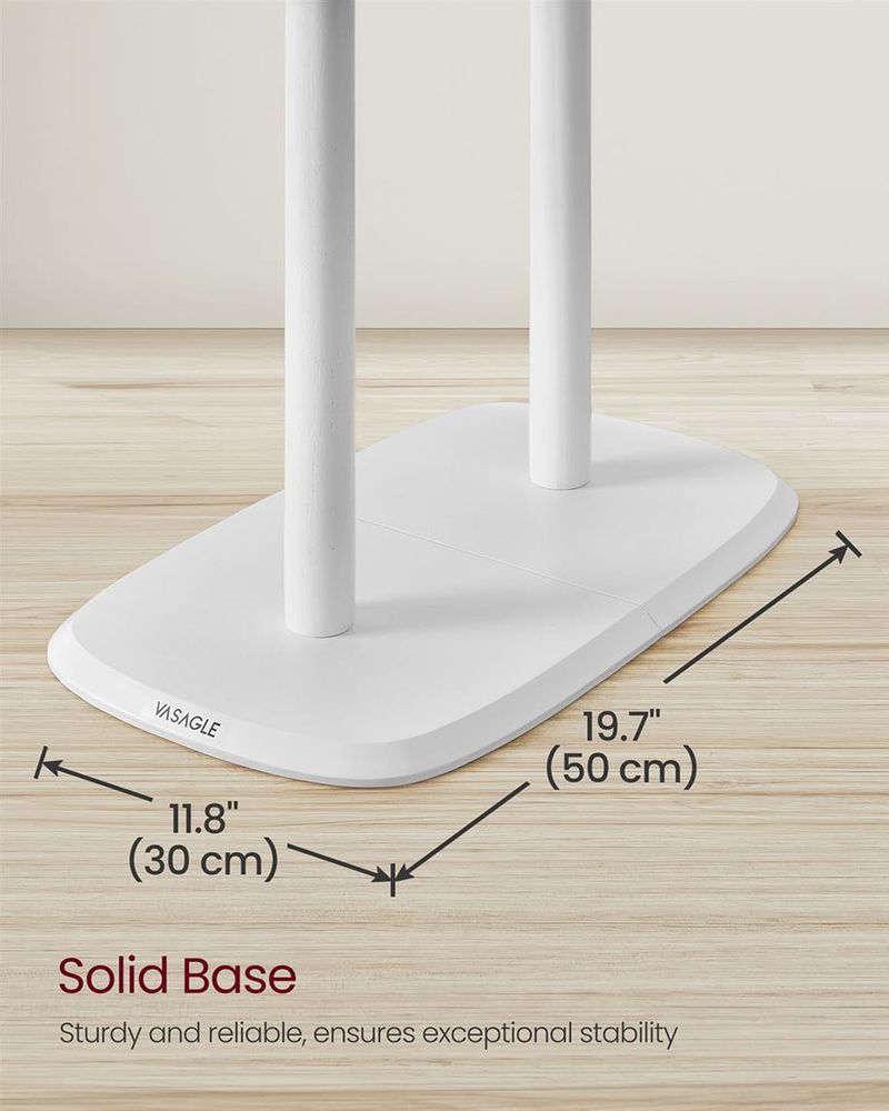 Safe, Stable & Sturdy: Rounded hooks prevent clothing damage, while the solid base ensures excellent balance. Each hook holds up to 8.8 lb, and the shelf supports up to 22 lb for secure, reliable use.