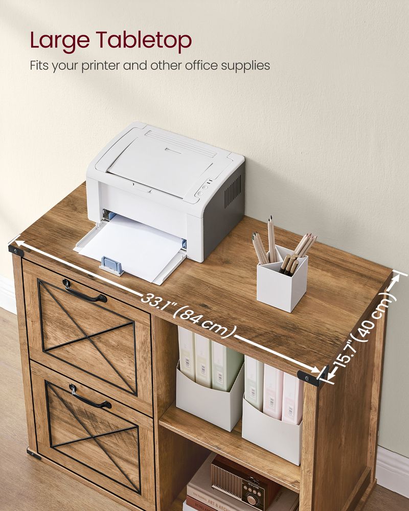 Add rustic charm and practical organization to your workspace with the VASAGLE Lateral File Cabinet. Designed with a warm honey brown finish and distinctive barn-style doors, this cabinet combines farmhouse aesthetics with modern functionality. Perfect for home offices or studies, it offers versatile storage for documents, books, and office essentials while doubling as a stylish printer stand.