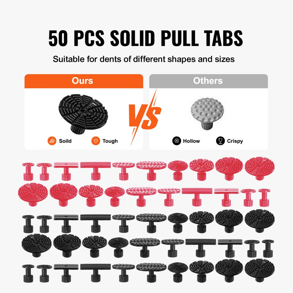 Dent Puller Tabs: Comes with a wide variety of pulling tabs to match different dent sizes and shapes.