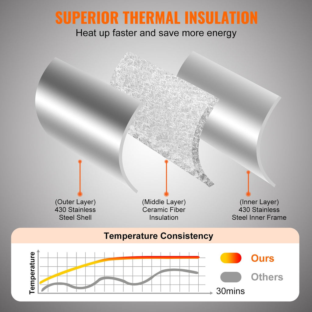 Triple Insulation Layers: Enhances heat retention and reduces exterior temperature for safer use.