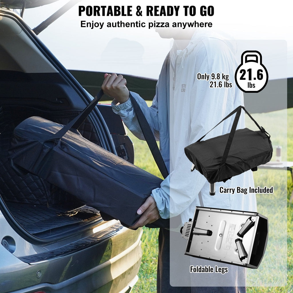 Bring authentic pizzeria-style flavor to your backyard or campsite with the VEVOR 12" Portable Gas Pizza Oven. Engineered for convenience and performance, this gas-powered oven heats up quickly to a scorching 1000°F (540°C), baking crispy, restaurant-quality pizzas in just minutes. The triple-layer insulation enhances heat retention and energy efficiency, while the durable iron spray black shell adds a sleek and rugged finish. With a compact, foldable design and gas-driven power, this oven is perfect for camping trips, tailgates, or patio cookouts.