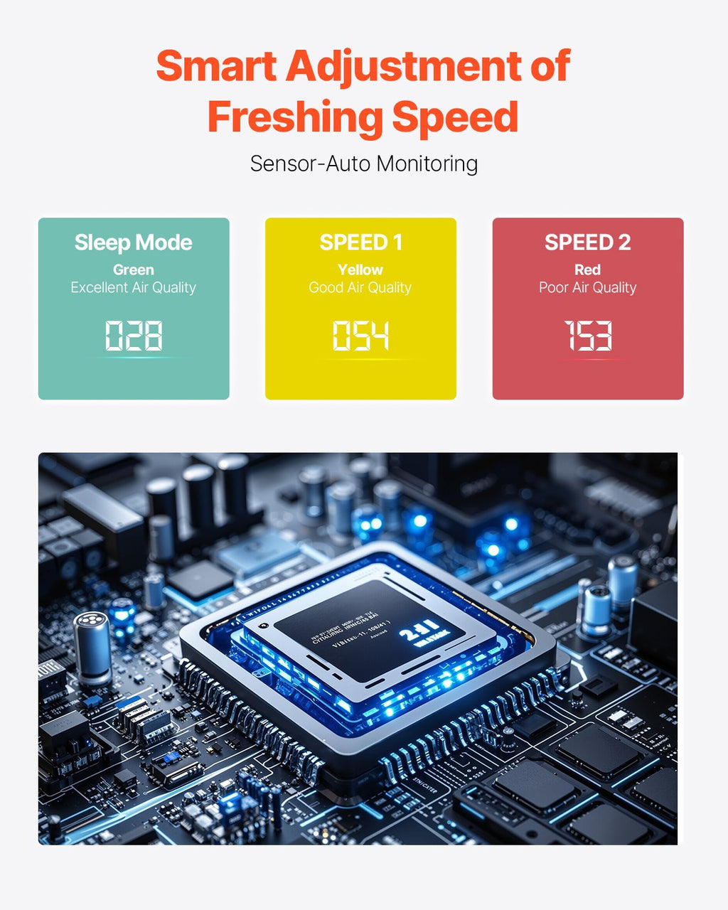 Clear Air Quality Indicator: Real-time display shows current air quality for awareness and control