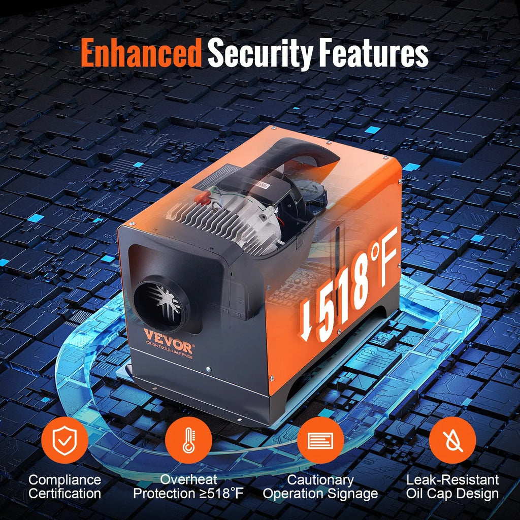 Stay warm and comfortable wherever your adventures take you with the VEVOR 12V 8KW Diesel Air Heater. Designed for areas of 215–269 ft² (20–25 m²), this all-in-one heater features a sandblasting aluminum heat exchanger for rapid heat transfer, warming your vehicle, RV, boat, or cabin in just 10 minutes. Its low-noise fuel pump ensures fuel efficiency while the 5L / 1.3 gal fuel tank provides up to 8 hours of continuous heat.