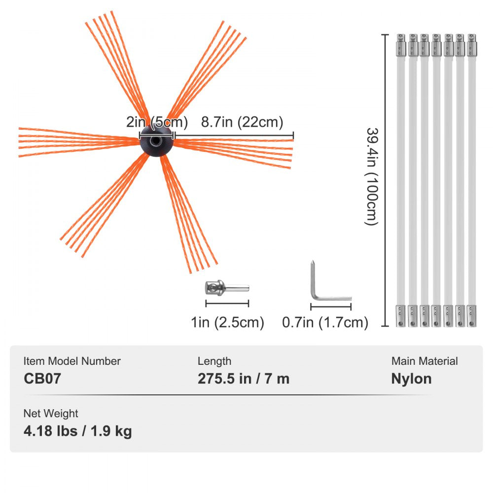 Keep your fireplace safe and your chimney clear with the VEVOR 23 Ft Chimney Sweep Kit. This heavy-duty cleaning set includes 7 reinforced nylon rods, each 39.3 inches long, that flex and twist to fit most flue sizes and bends. Featuring a 360-degree cleaning brush and secure spring clasp connections, this kit is designed for efficient soot and creosote removal without damaging your chimney. Whether for home fireplaces or wood stoves, it’s the ideal DIY maintenance tool for a cleaner, safer burn.